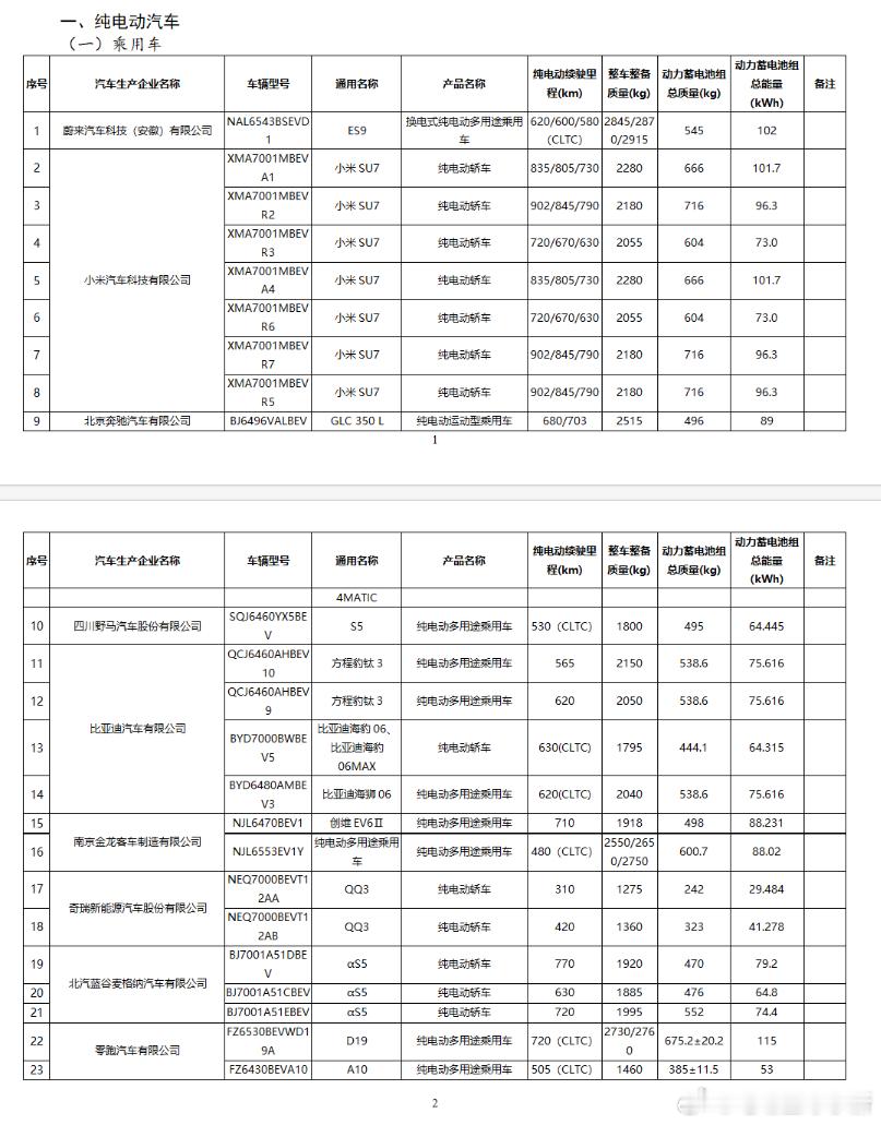 - 102.326kWh 版本,整备质量 2540kg,纯电续航为 880km;- 122.496kWh 版本,整备质量 2895/2700/2540kg,纯电续航为 1036/1002/860/820km;