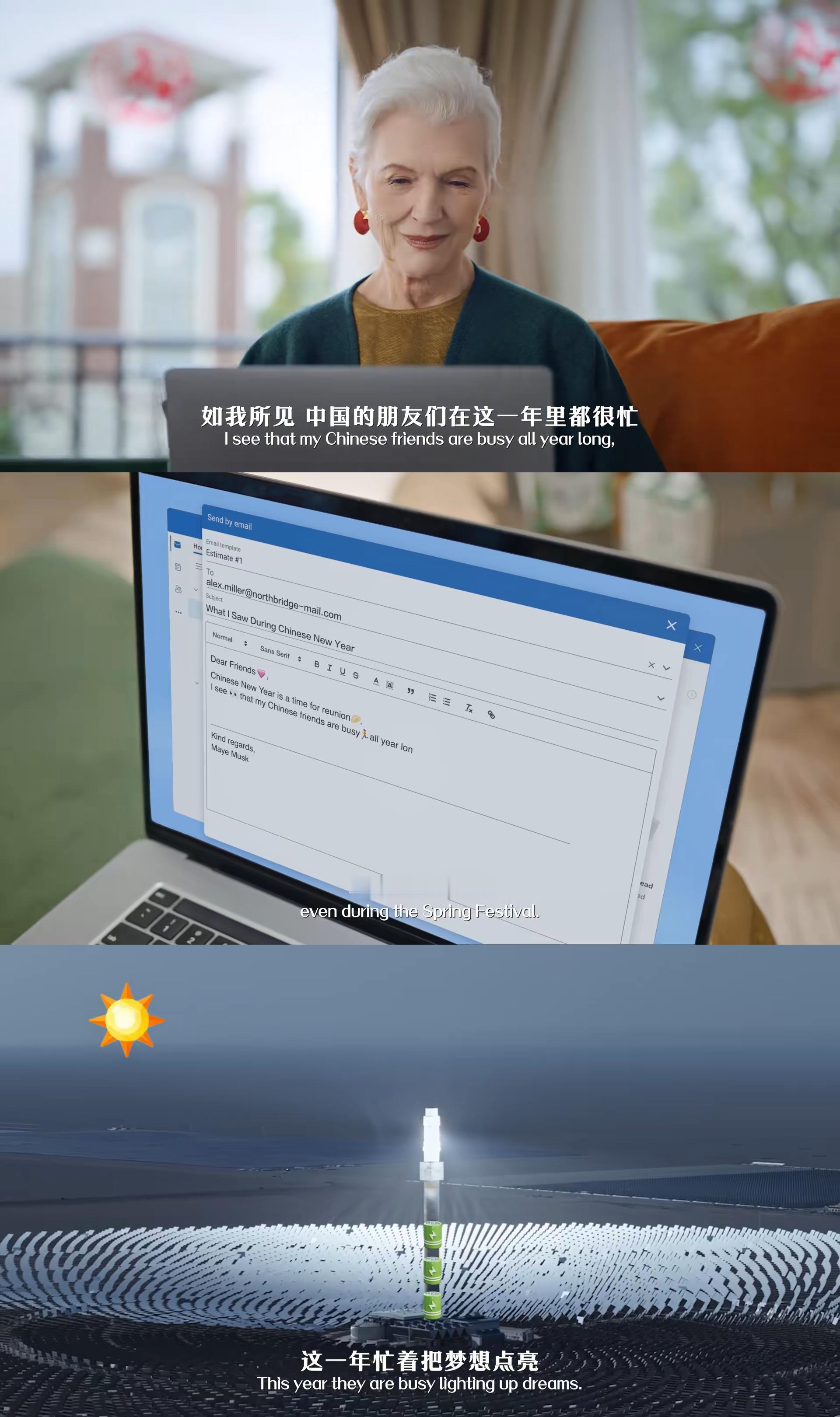 马斯克妈妈眼里的中国春节 梅耶·马斯克的新春视角太戳人!看懂中国人一年的忙碌与坚守,也懂春节相聚的意义。以礼传情,为亲友团圆添一份理由,这份跨文化的新春祝福,温柔又有力量!