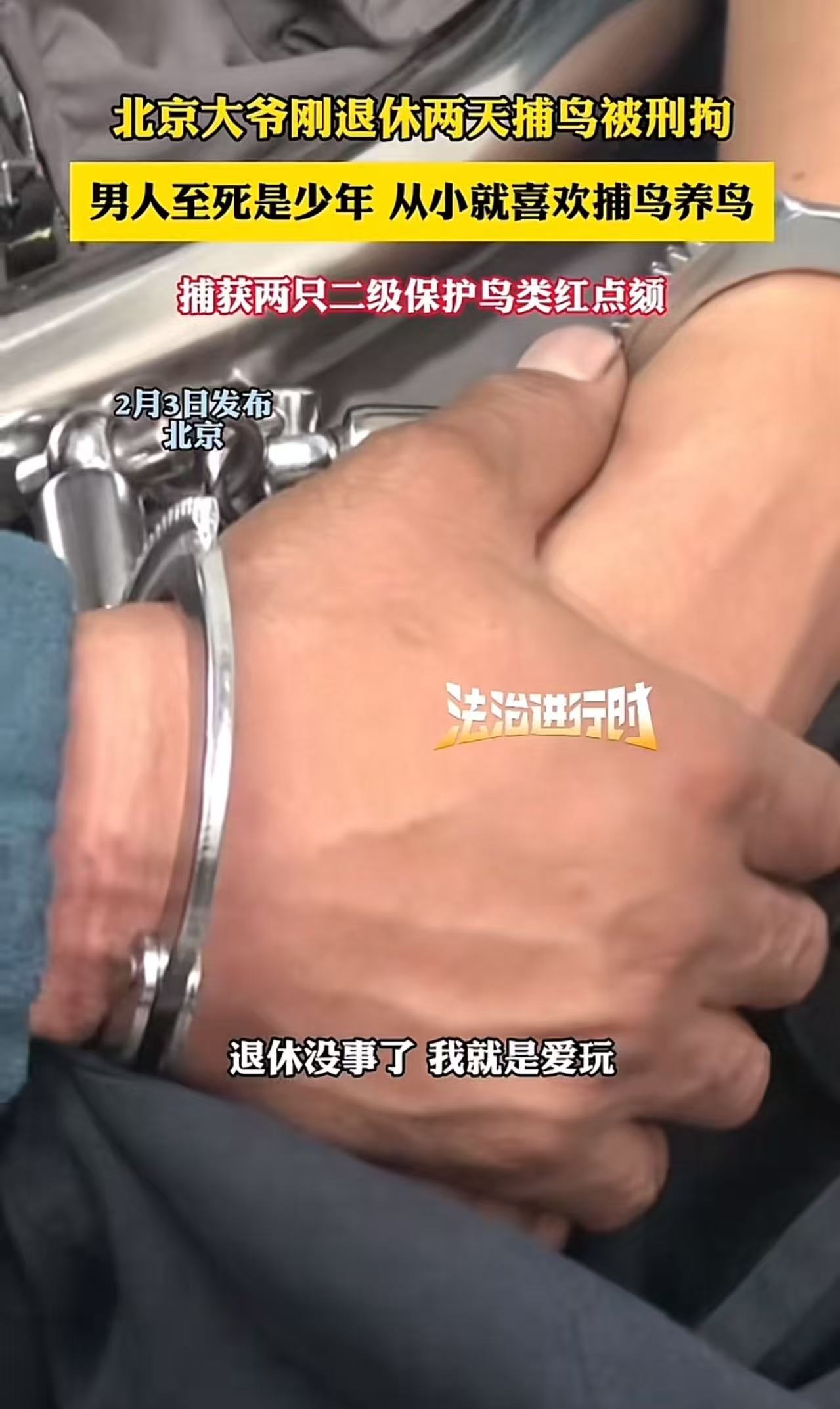 “吃了没文化的亏!”北京,大爷刚退休两天捕鸟被刑拘!原来,大爷捕获两只耳机保护鸟类红红点颏!大爷:“不知道后果这么严重!”网友:这个可以从宽处理,是爱鸟,不是吃鸟卖鸟!