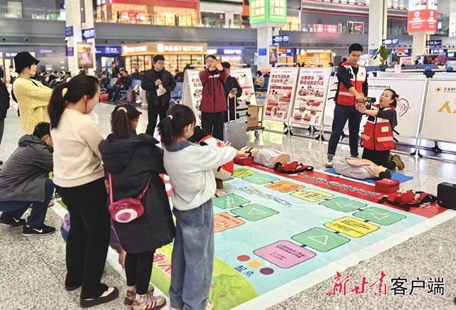 近日,在兰州西客站,一个特殊的“地摊”——红十字“急救地摊”,吸引了市民和旅客驻足。