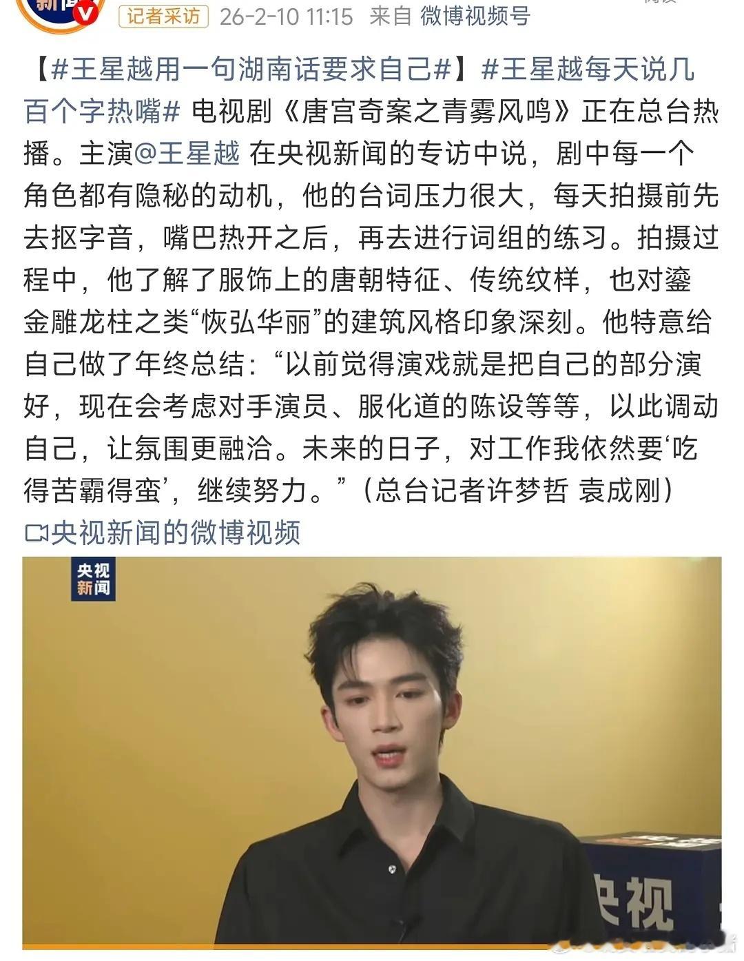 王星越央视专访《唐宫奇案》现在演戏会考虑对手演员、服装陈设等,台前幕后都很努力,言之有物