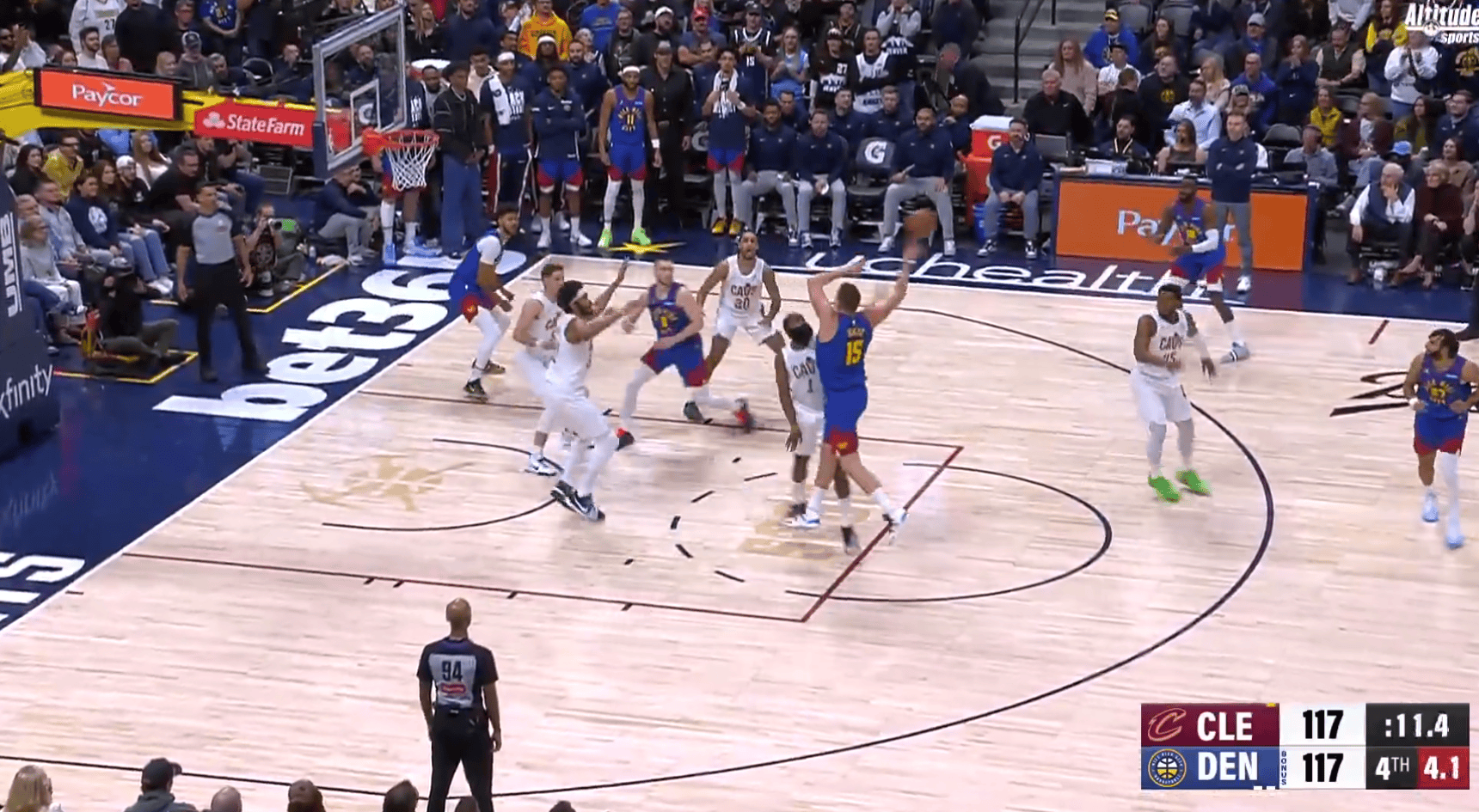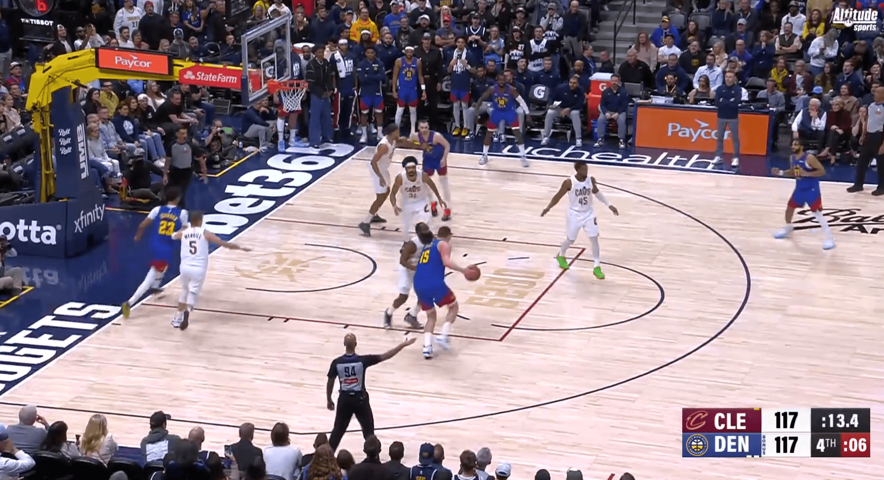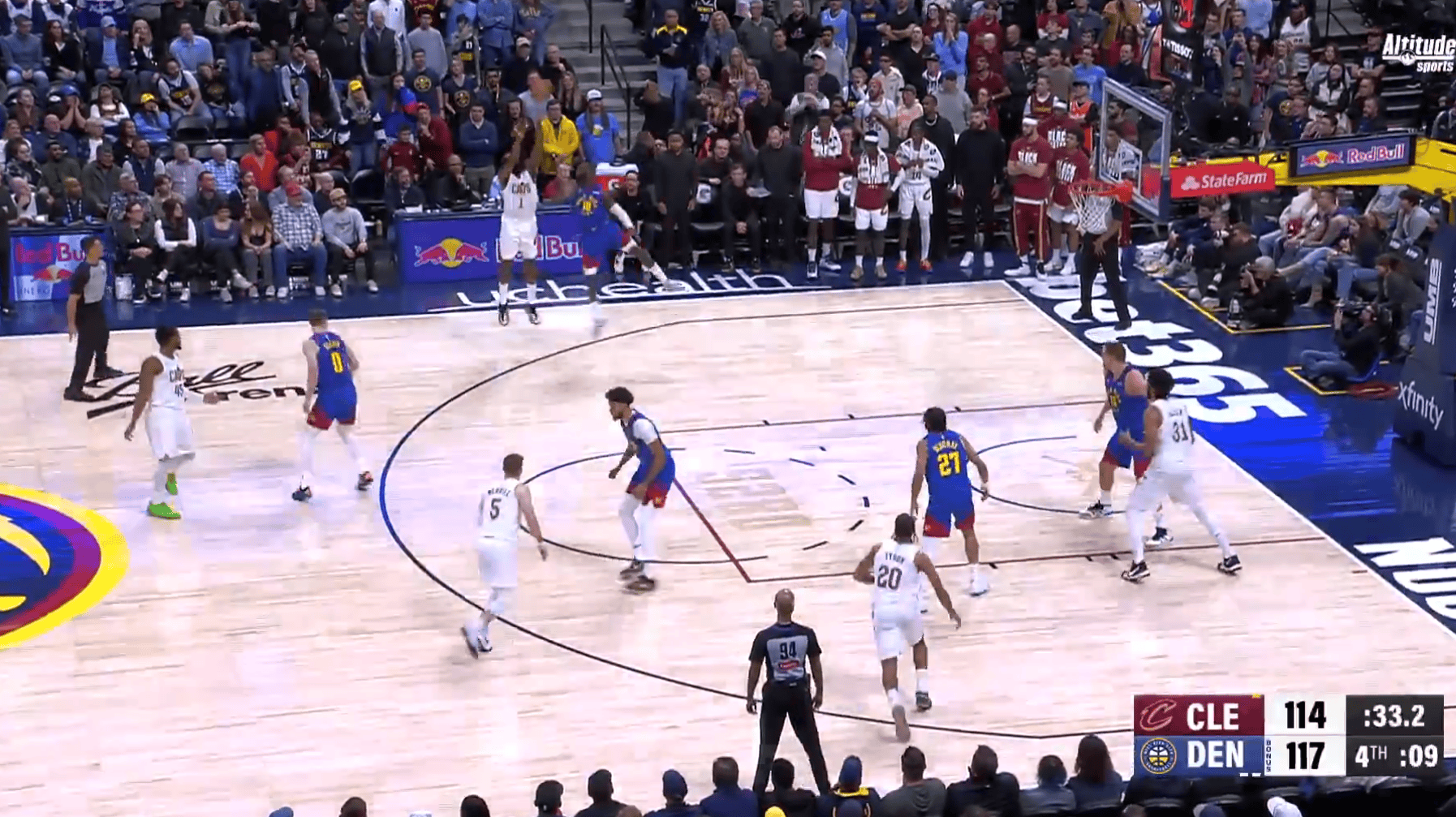 最后时刻,哈登命中关键三分+米切尔造成犯规两罚全中,骑士逆转战胜掘金。