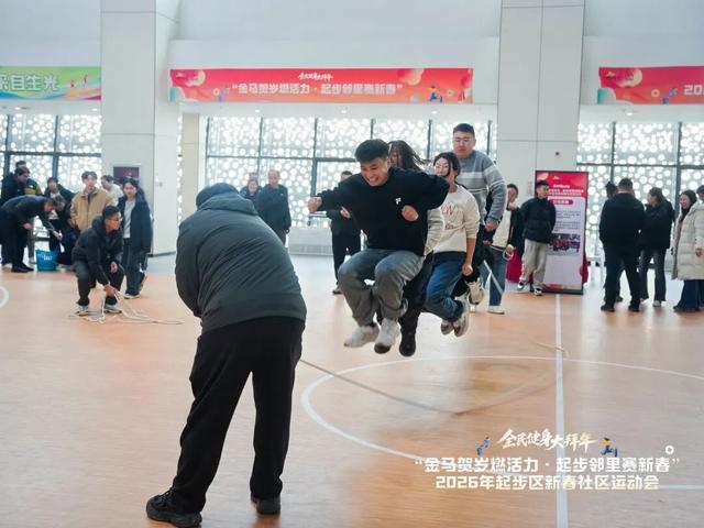 2月9日下午,2026年“全民健身大拜年”起步区新春社区运动会在兰溪文体中心举行,来自全区各个社区的居民代表队齐聚一堂,通过一系列趣味运动项目喜迎新春、传递邻里温情。