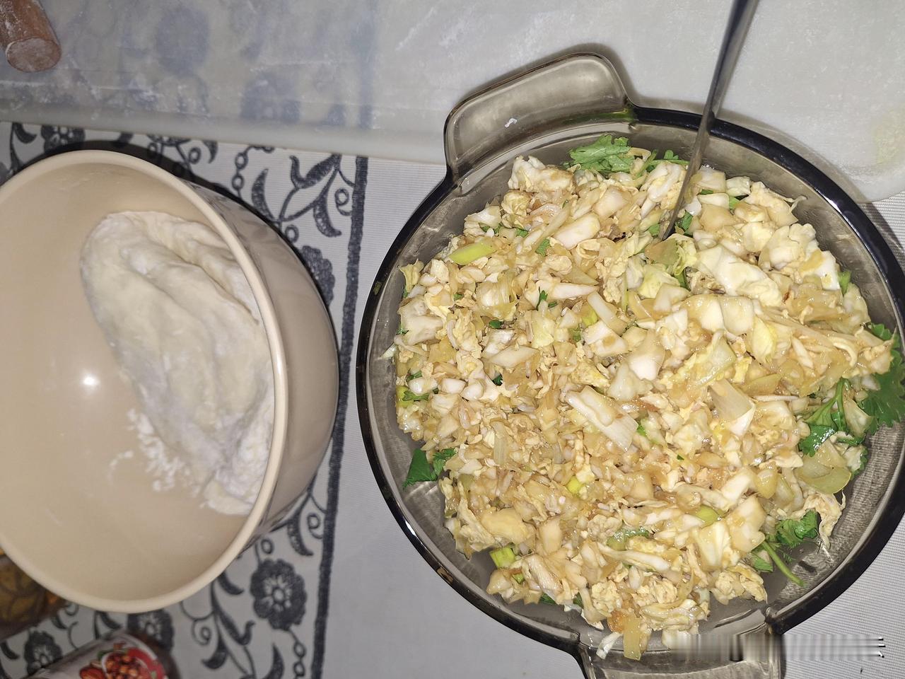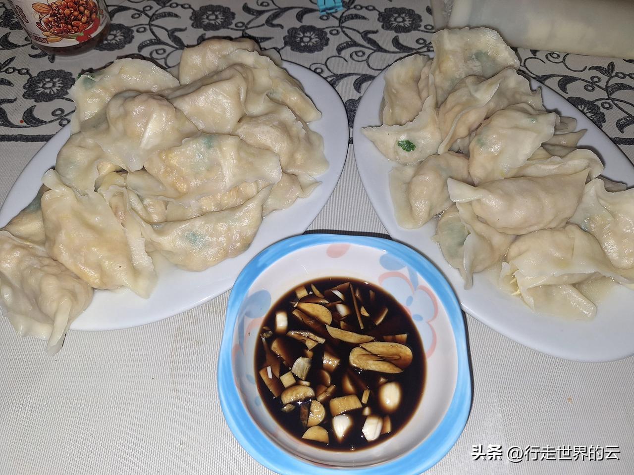 今天是小年,大年的彩排,饺子吃起来,卷心菜鸡蛋虾皮做馅,美味可口