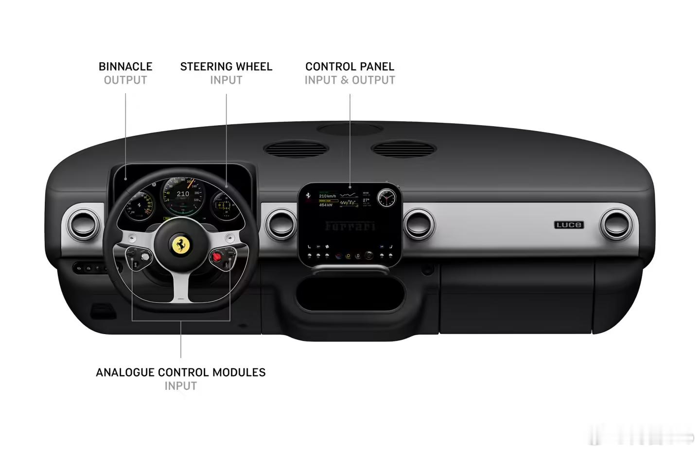 法拉利首款电动跑车定名 Luce,看了内饰图发现保留了大量的实体按键,这点我比较赞成,虽然现在国产车把语音交互做到了极致,日常用真的很爽,尤其是导航听歌。不过实体按键带来的那种手握方向盘盲操的笃定,也是另一种爽。 以前觉得按键是落后,现在觉得在电车上能摸到实体键,反而是一种奢侈的安全感大v聊车