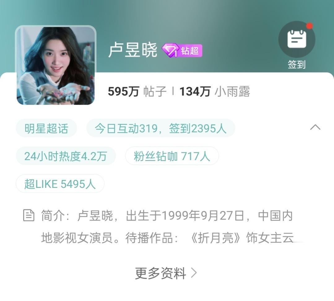 卢昱晓2025年全网涨粉800万➕ 超like同期花位列第四,并且在无任何活动下超话连续15周钻超,真有效播剧