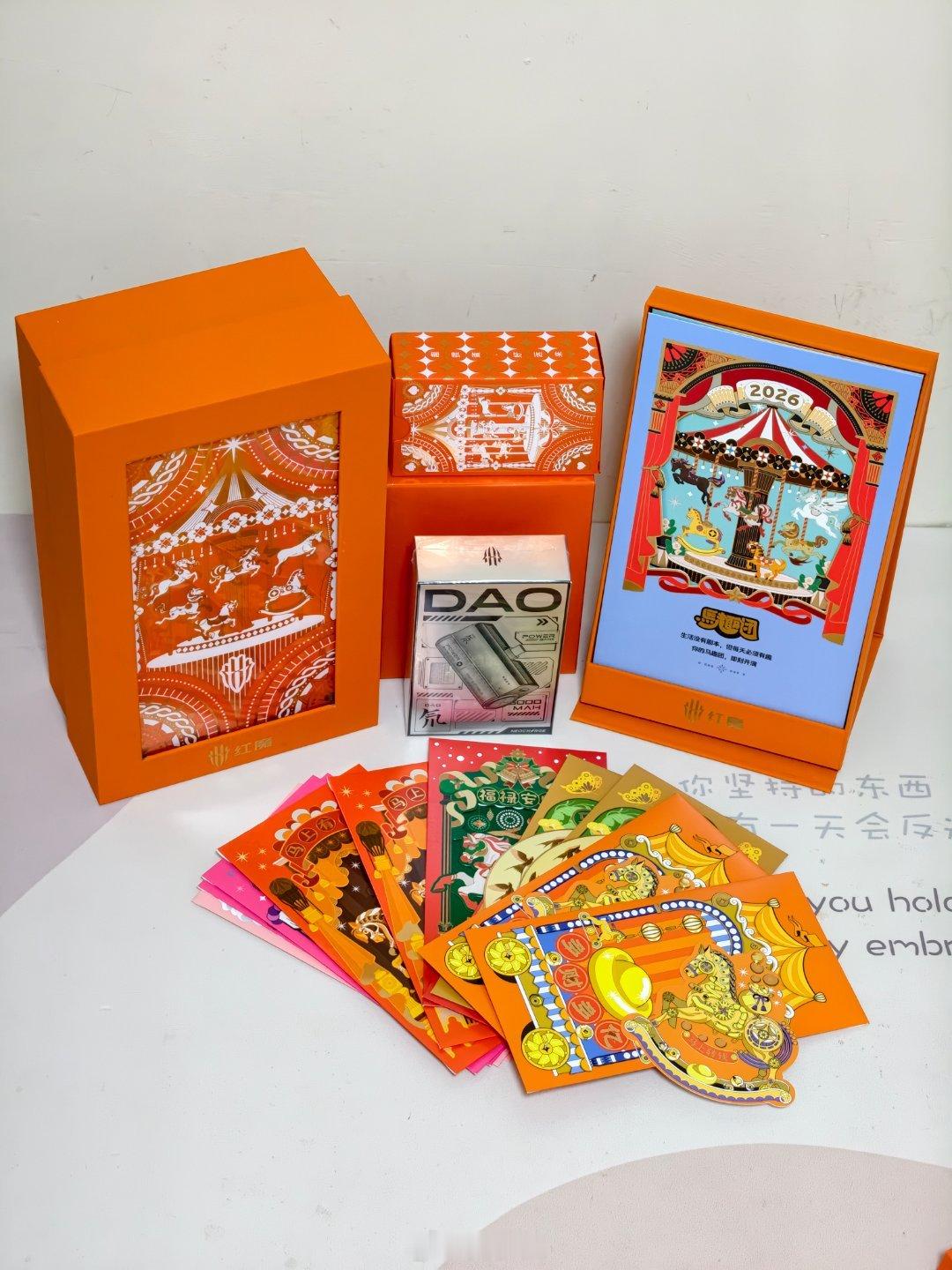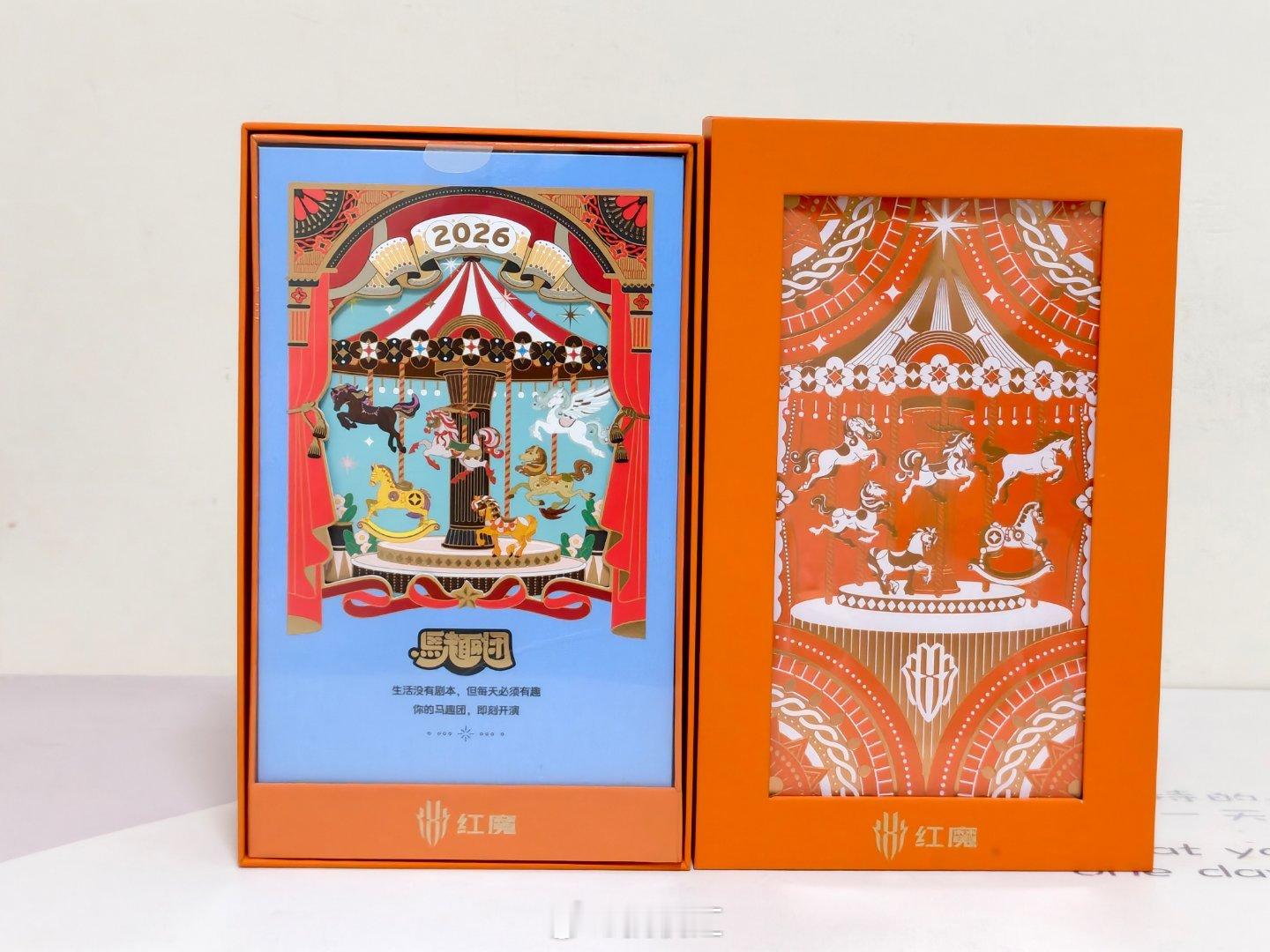 收到了红魔新年礼盒,里面有马趣团生肖主题日历、创意红包 、扑克、氘峰能量胶囊移动
