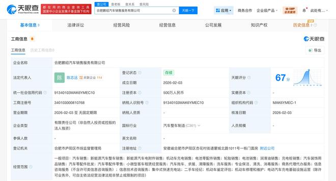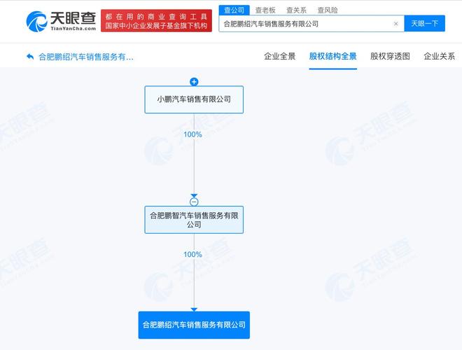 雷达财经讯,天眼查工商信息显示,近日,合肥鹏绍汽车销售服务有限公司成立,法定代表人为陈志远,注册资本500万人民币,经营范围含汽车销售、新能源汽车整车销售、新能源汽车电附件销售、机动车充电销售、电池零配件销售、商务代理代办服务、信息咨询服务、二手车经纪等。股权全景穿透图显示,该公司由合肥鹏智汽车销售服务有限公司全资持股,后者为小鹏汽车销售有限公司全资子公司。