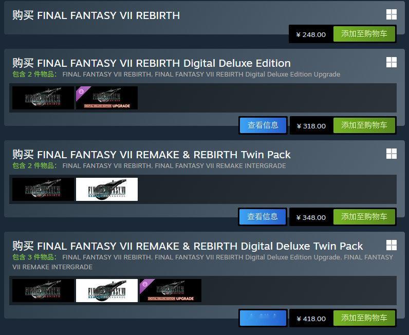 【等等党的胜利】《最终幻想7 重生》Steam国区价格再次永降,标准版从348元
