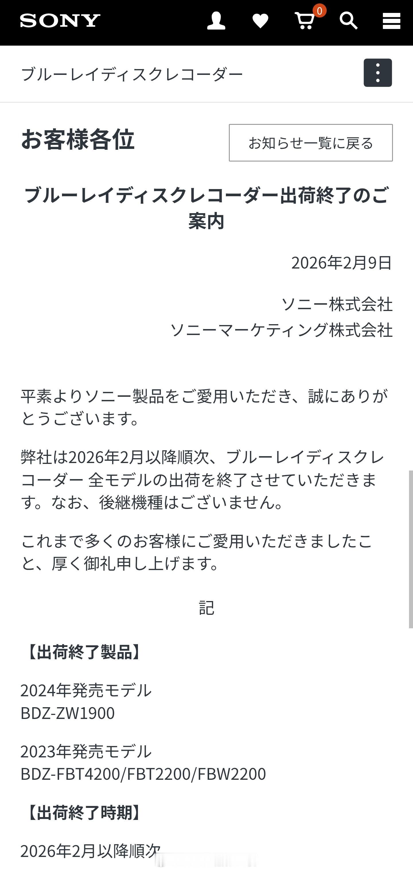 终于,蓝光影碟技术和市场还是走到了这一步……2 月 9 日,索尼在日本官网索尼正式宣布,将逐步停止出货所有具备刻录功能的蓝光录像机型号,包括 2024 年发售的BDZ-ZW1900,以及 2023 年发售的 BDZ-FBT4200、BDZ-FBT2200、BDZ-FBW2200,且不会推出后续机型。此前,2024 年 7 月索尼已经停售消费级蓝光刻录碟,2025 年 2 月全面停产所有刻录用蓝光光盘;但商业发行蓝光(电影、游戏盘)与播放机仍在售。