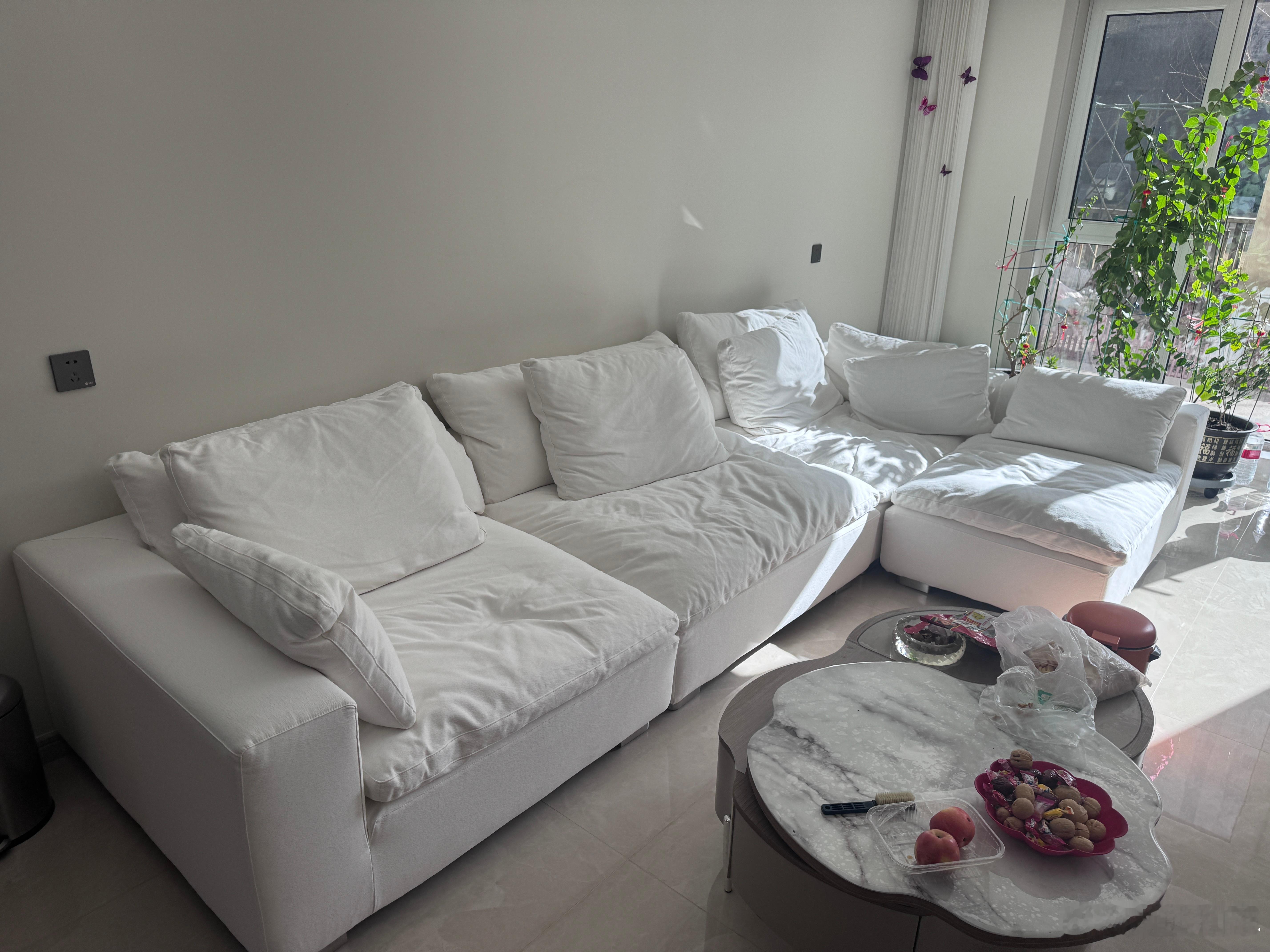 回老家了,我妈给我房子里买了套沙发!话说是不是有点太白了?而且我这一楼带院儿,更容易脏了! 但是这套高仿云沙发,真的很舒服啊!已经窝在里面睡一觉了! 银川