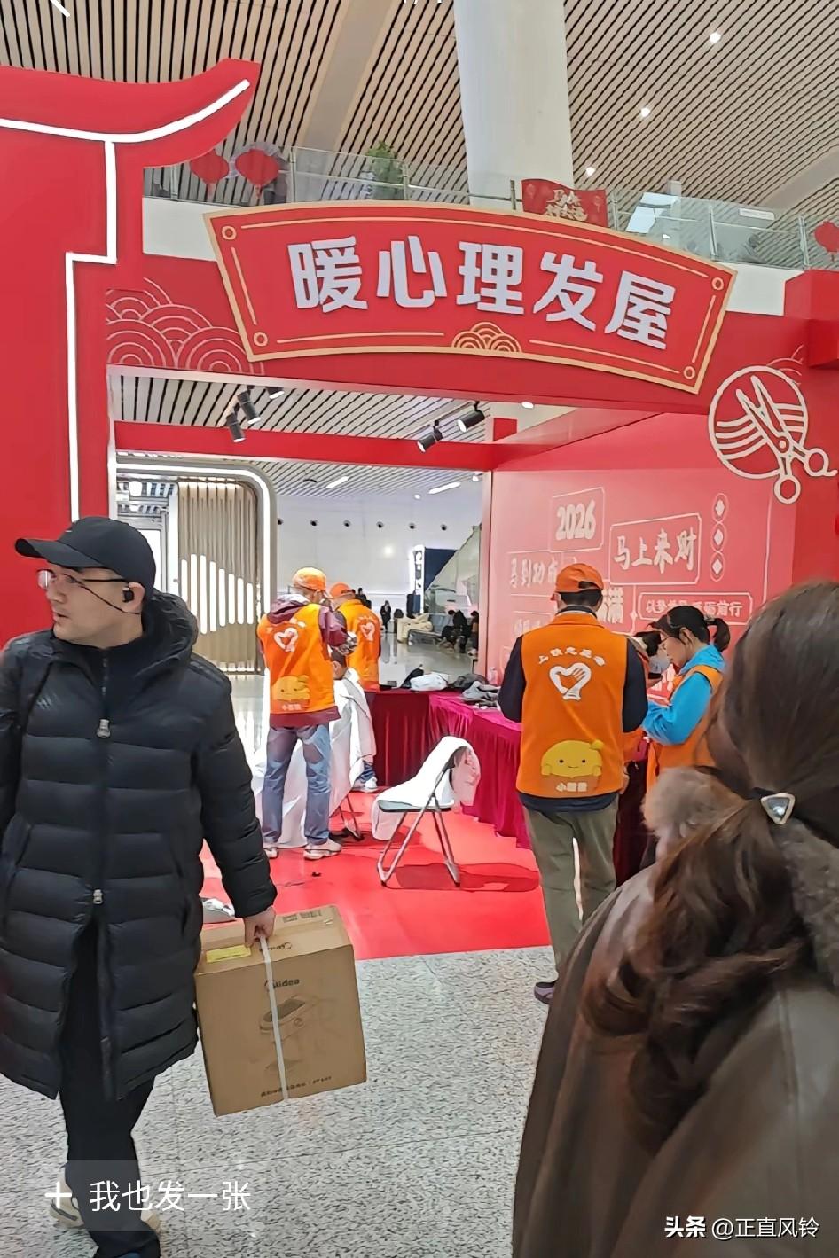 杭州一座有温度的城市,很多人春节只抢到半程票,在杭州站坐车看到工作人员在发免费凳子 杭州真的很不错啊,还给免费理发在高铁站里,免费发对联,免费验光,还有免费的全家福,理发的时候还跟大叔大爷们聊天说好好回家过个年!杭州东可以写对联,还有海马体免费拍照,真的很暖心,回乡前的一份温情