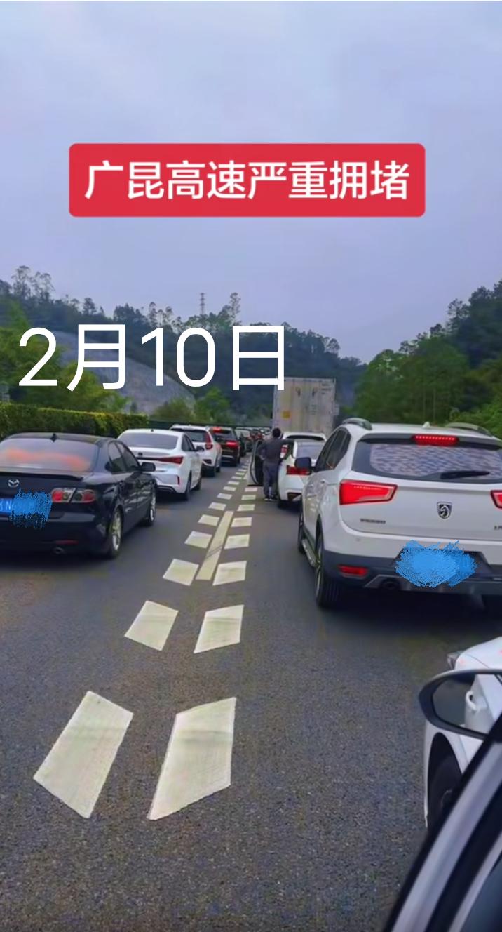 2月10日15时,广州和佛山等地开车会广西南宁和玉林还有梧州和贺州等地过年的车流