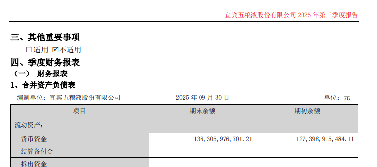 截至2025年3季度末,五粮液持有货币资金1363.06亿元,较当年年初增长89.07亿元。