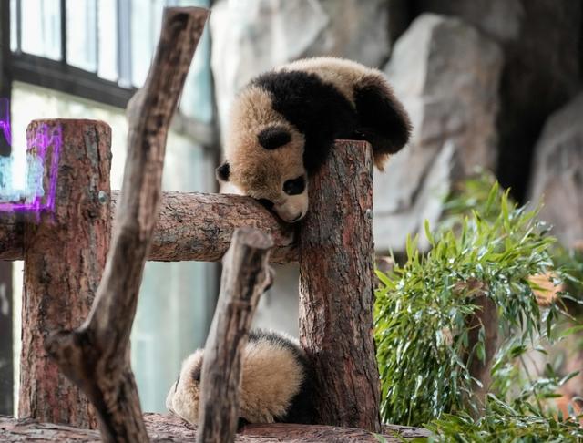 今天上午,在提前探营的大熊猫母幼展区,“芊然”(姐姐)和“芊逸”(弟弟)一点也不“怯场”,表现十分活跃,引起阵阵欢呼。只见它们在滑滑梯和栖架上互动玩耍,引得围观人群纷纷举起相机和手机。