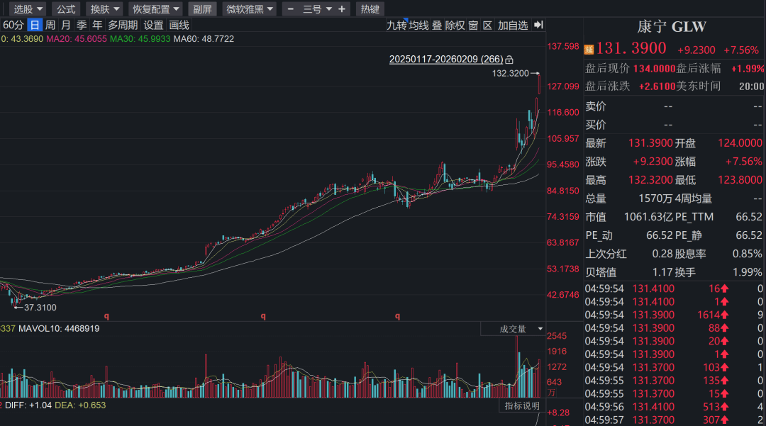 海外方面,康宁(Corning)与Meta达成的60亿美元长期光纤供应协议,为AI数据中心需求的高景气提供了强力佐证。康宁股价近期也是叠创新高。