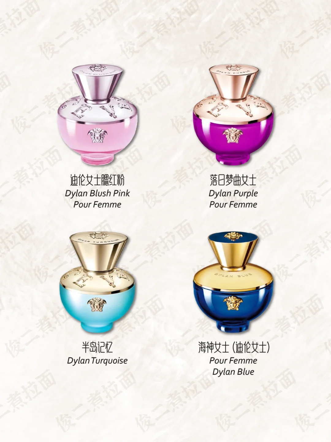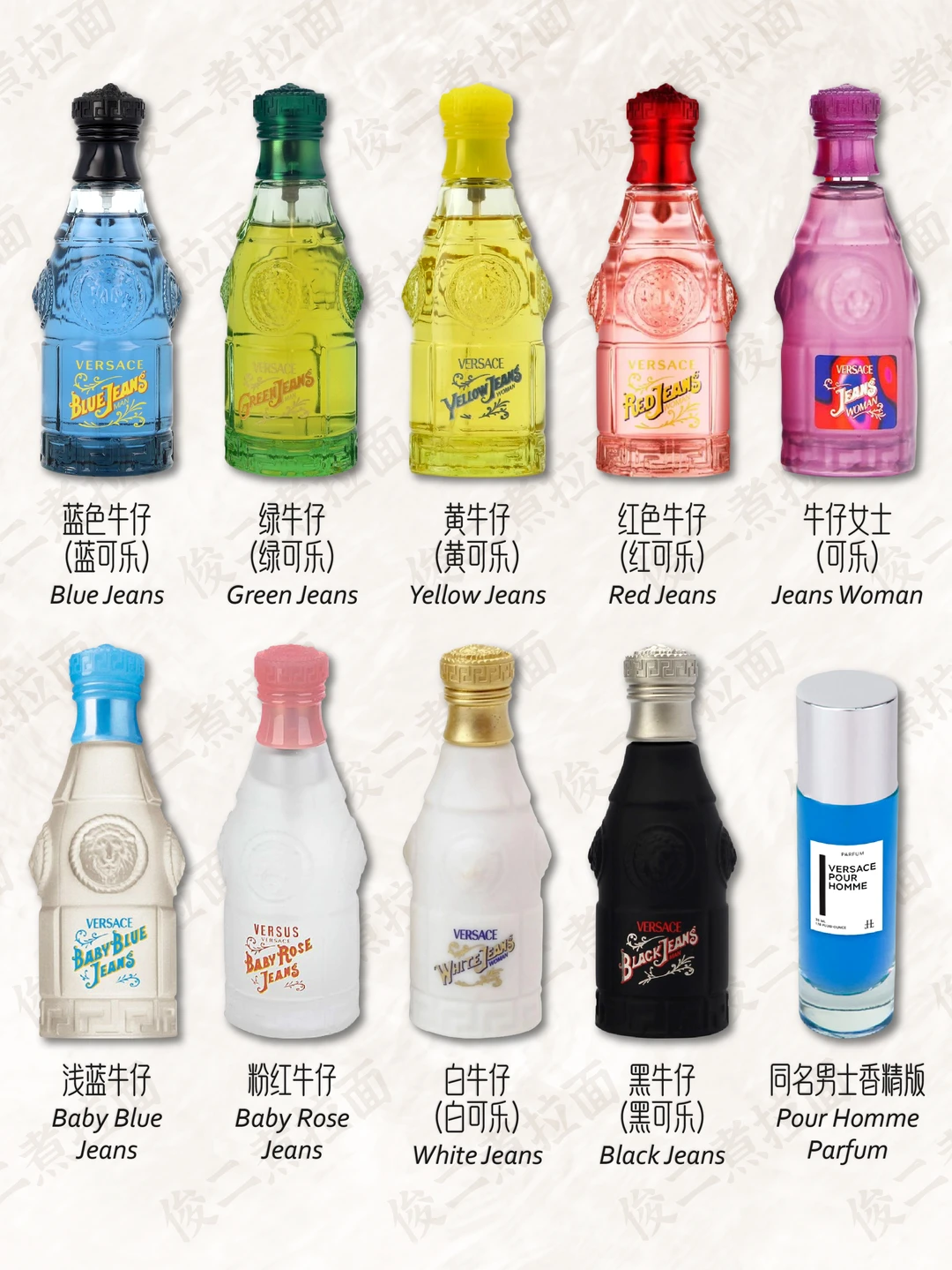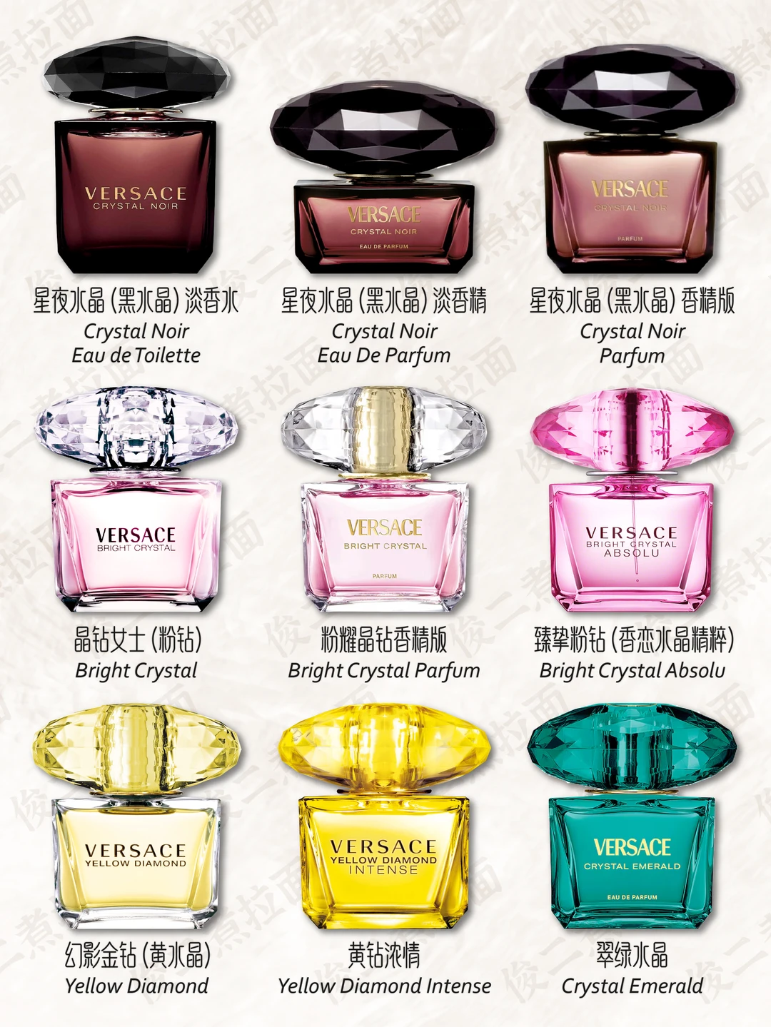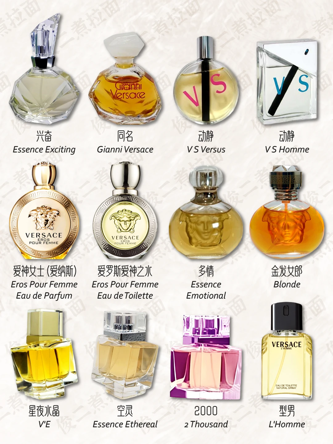 💎 香水在很早以前就是詹尼·范思哲的重要业务之一。他的第一款香水是专为女性设计,取名为“Gianni Versace”,于1981年问世,是一款花香西普调的香水,香水瓶被设计成引人注目的钻石形,棱形的底座,有56个切面的瓶身。1991年3月,VERSACE 推出“Versus”香水;1993年,推出 Red 和 Jeans 香水;1995年,首个 VERSACE 时装展在纽约举行;2018年年末,VERSACE 被美国轻奢集团 Michael Kors(后更名为 Capri 控股)收入麾下,成为该集团旗下品牌。