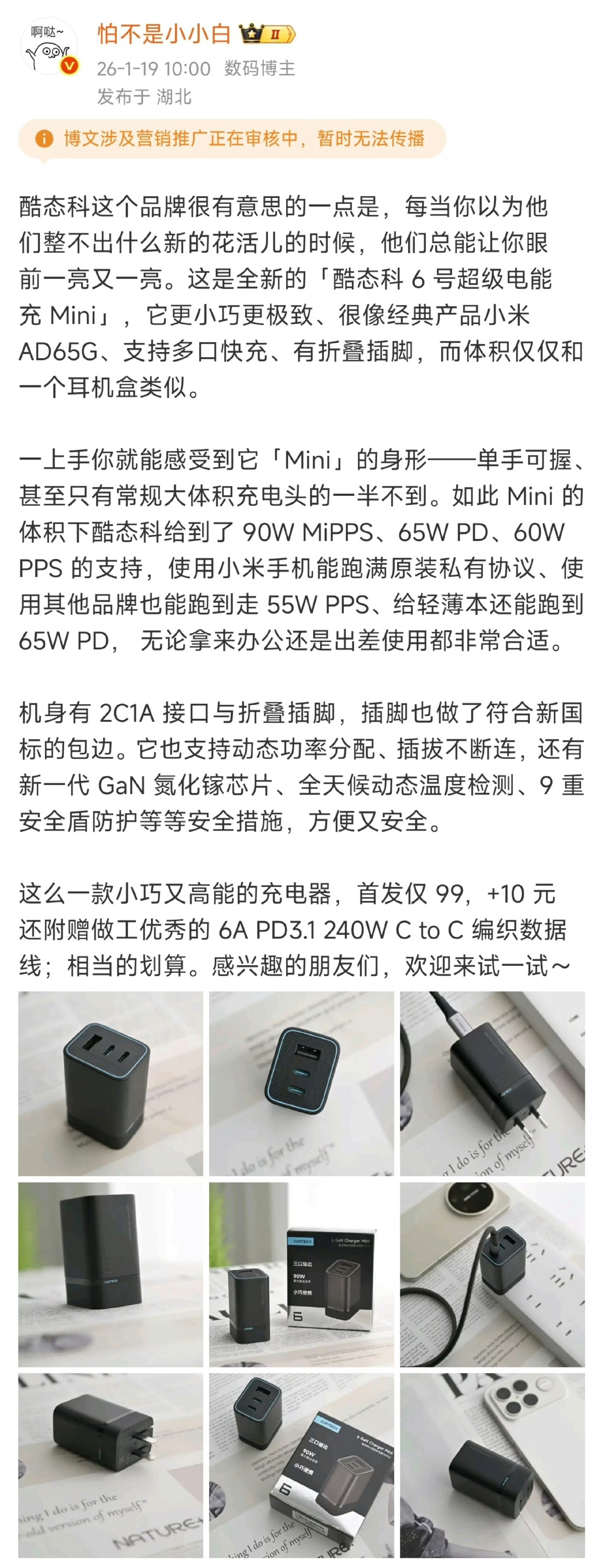 白色的酷态科 6 号超级电能充 Mini 也很好看嗷
