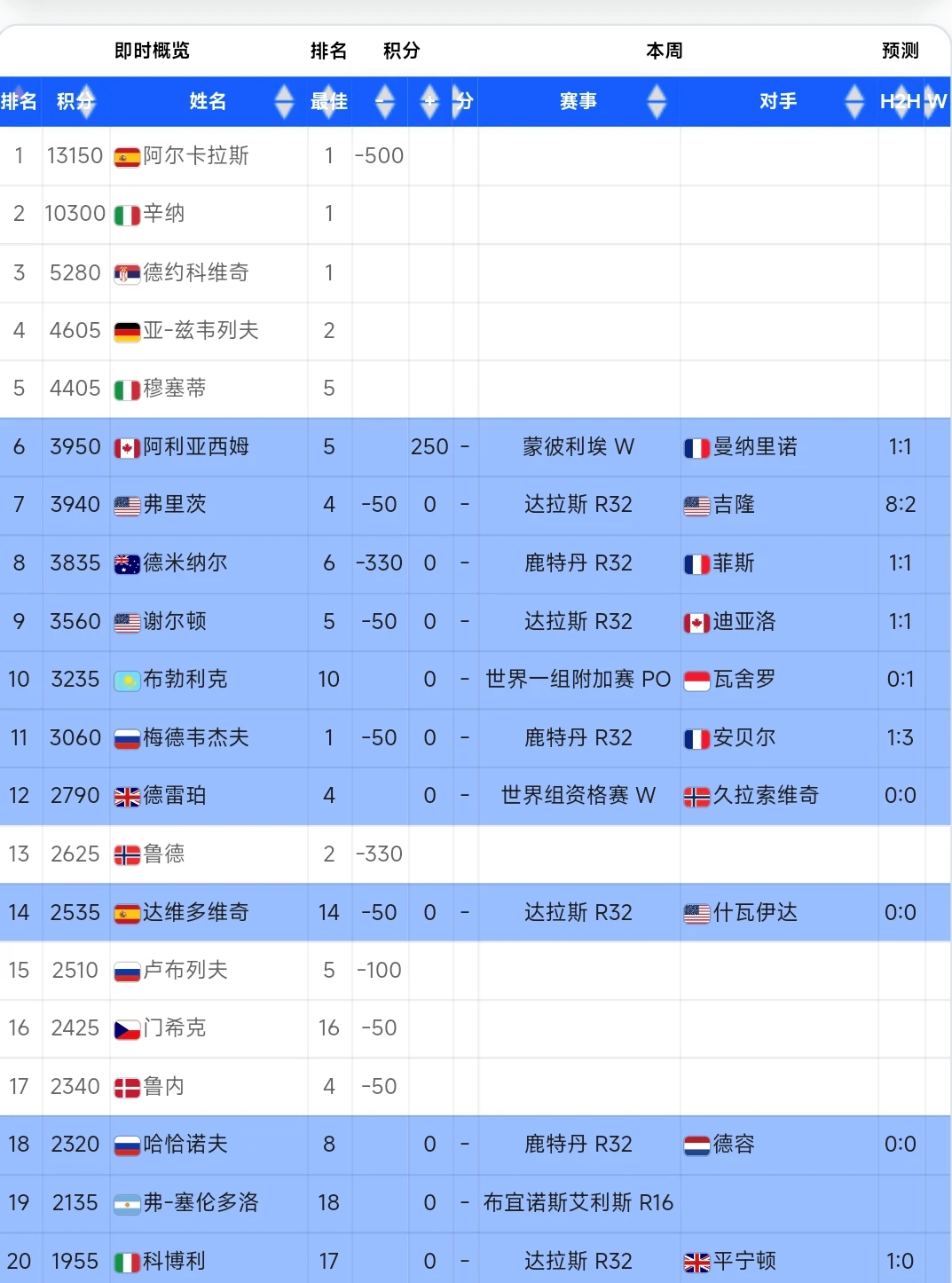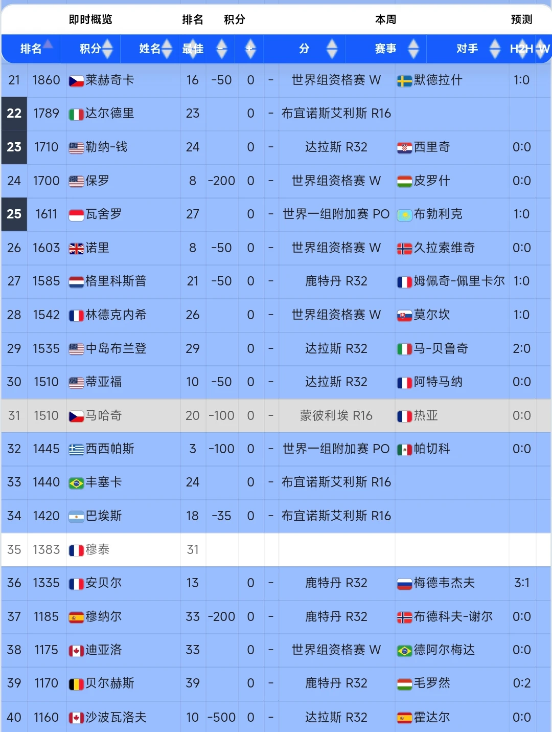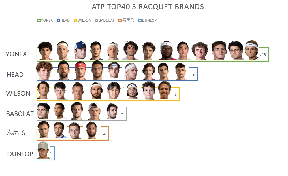 ATP男子前40球员都用什么品牌网球拍?