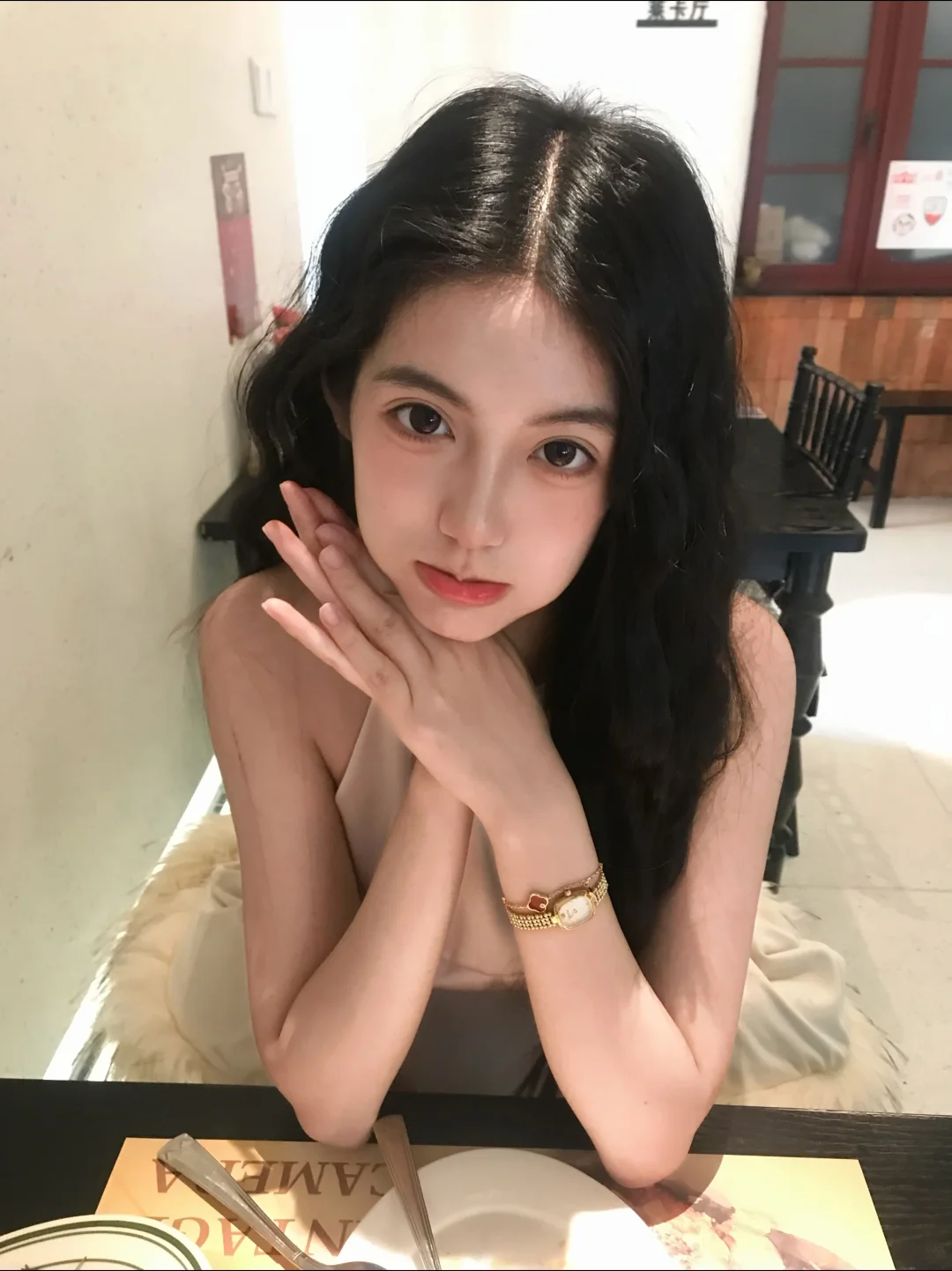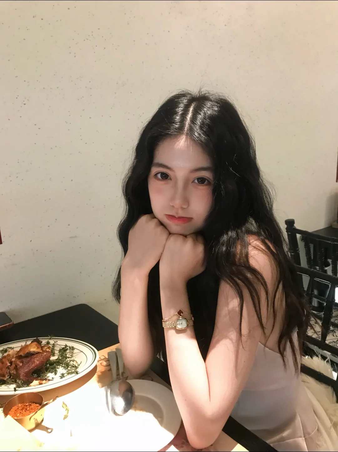 这个周末我来约会咯 黄烛光映着座椅,连餐具都泛着温柔的光晕✨ 特意选了件小裙子 搭配复古小金表,在烛光下泛着细腻流光,细节氛围感满满~