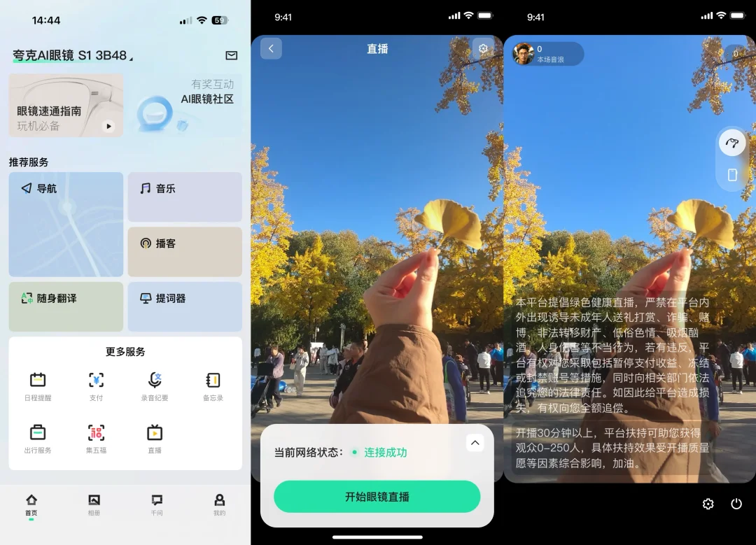 ▫️直播:手机App点“直播”→眼镜图标→开播