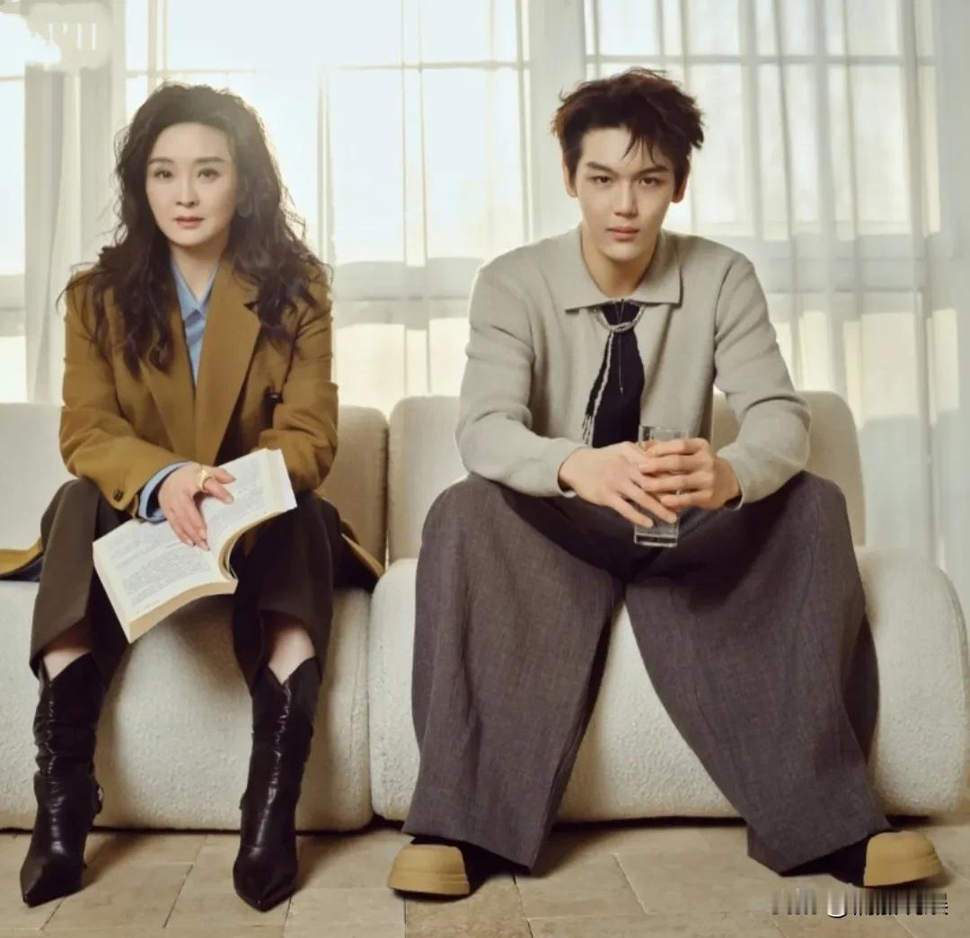 王艳和儿子球球拍新年大片,不得不说,她儿子这颜值、身高,真的适合出道。 52岁的
