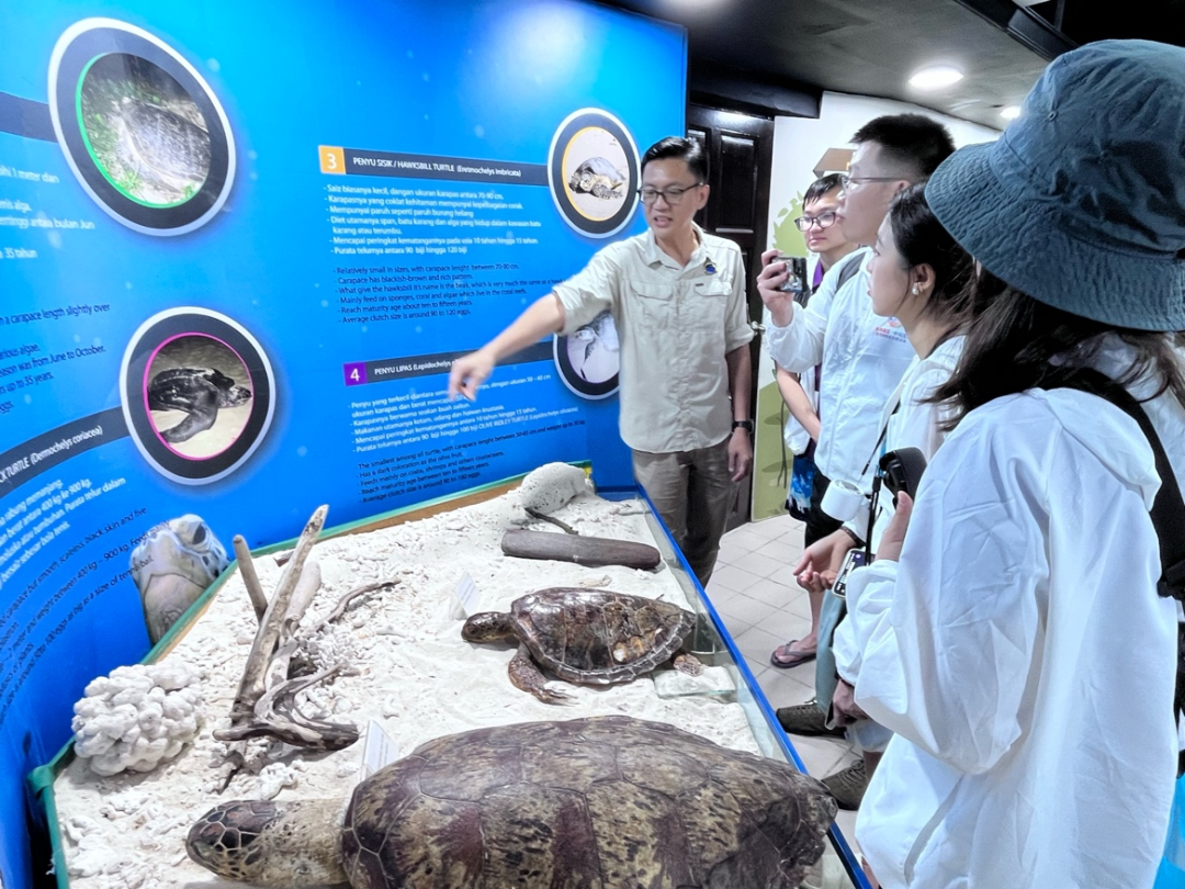 1月23日,支队来到沙巴大学婆罗洲海洋研究所(BMRI),与研究人员们开展座谈交流,并参观了研究所的海洋馆及相关科研设施。实践队员从科学研究的角度,进一步理解了沙巴海洋生态保护在技术路径、知识生产与社会协作层面的支撑体系,也更加清晰地认识到科研机构在连接政策、工程实践与社区行动中的关键作用。