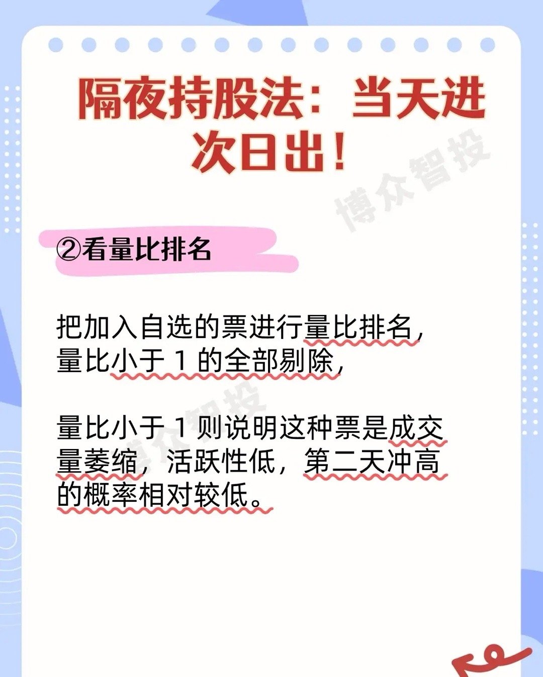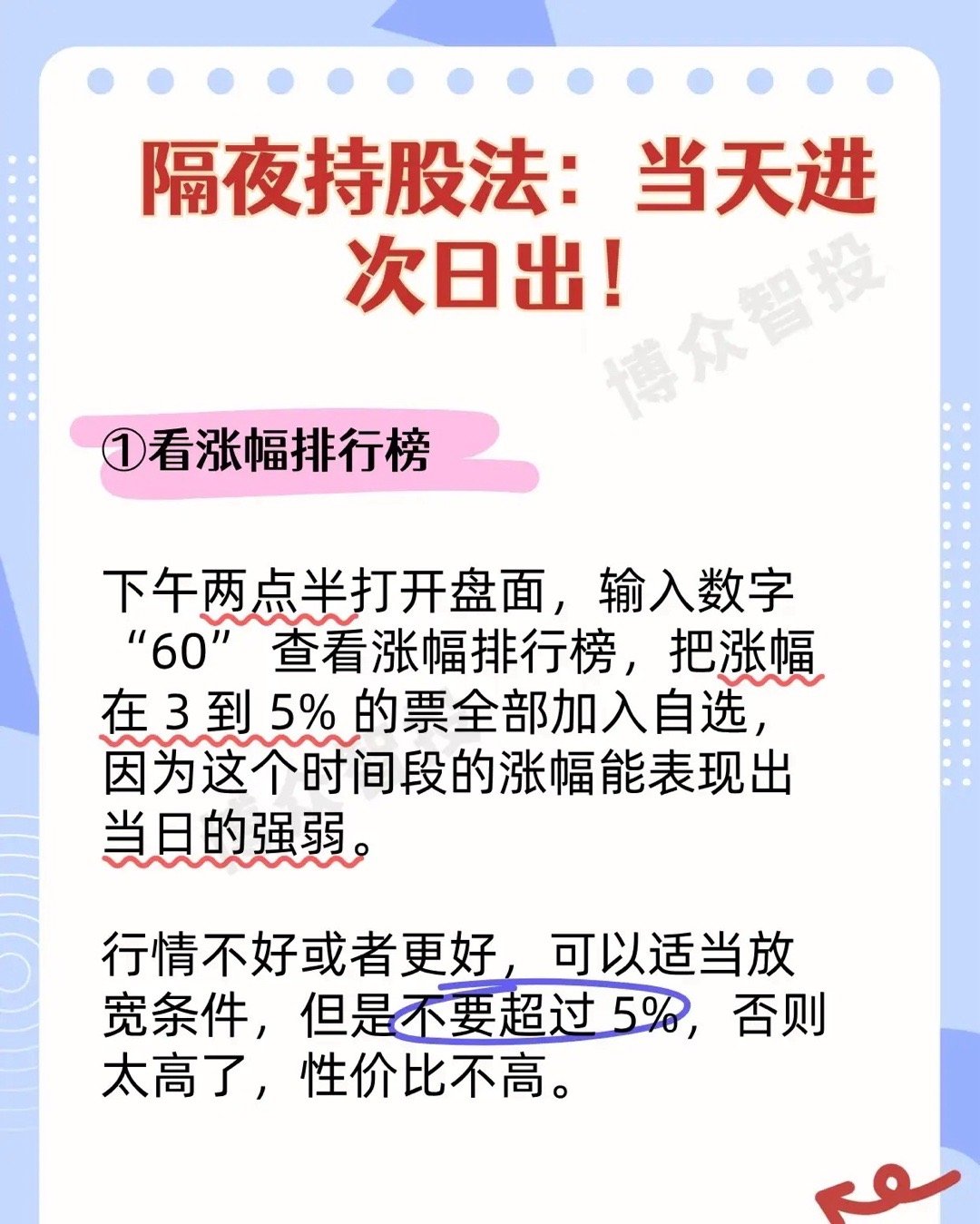 隔夜持股法:当天进 次日出!——完整选股策略总结这套“隔夜持股法”是一种短线交易