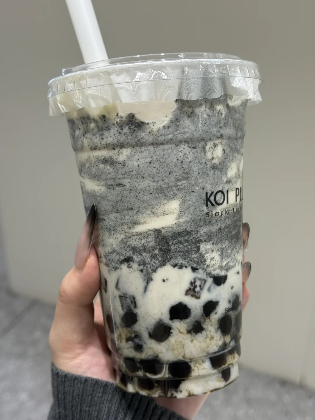 黑金乳酪碳乌龙➕波霸➕烤黑粉粿 少冰微糖/不另外加糖,黑芝麻奶酪挂壁,惊为天人… 烤黑粉粿这个小料我也好爱!!糯糯很有嚼劲