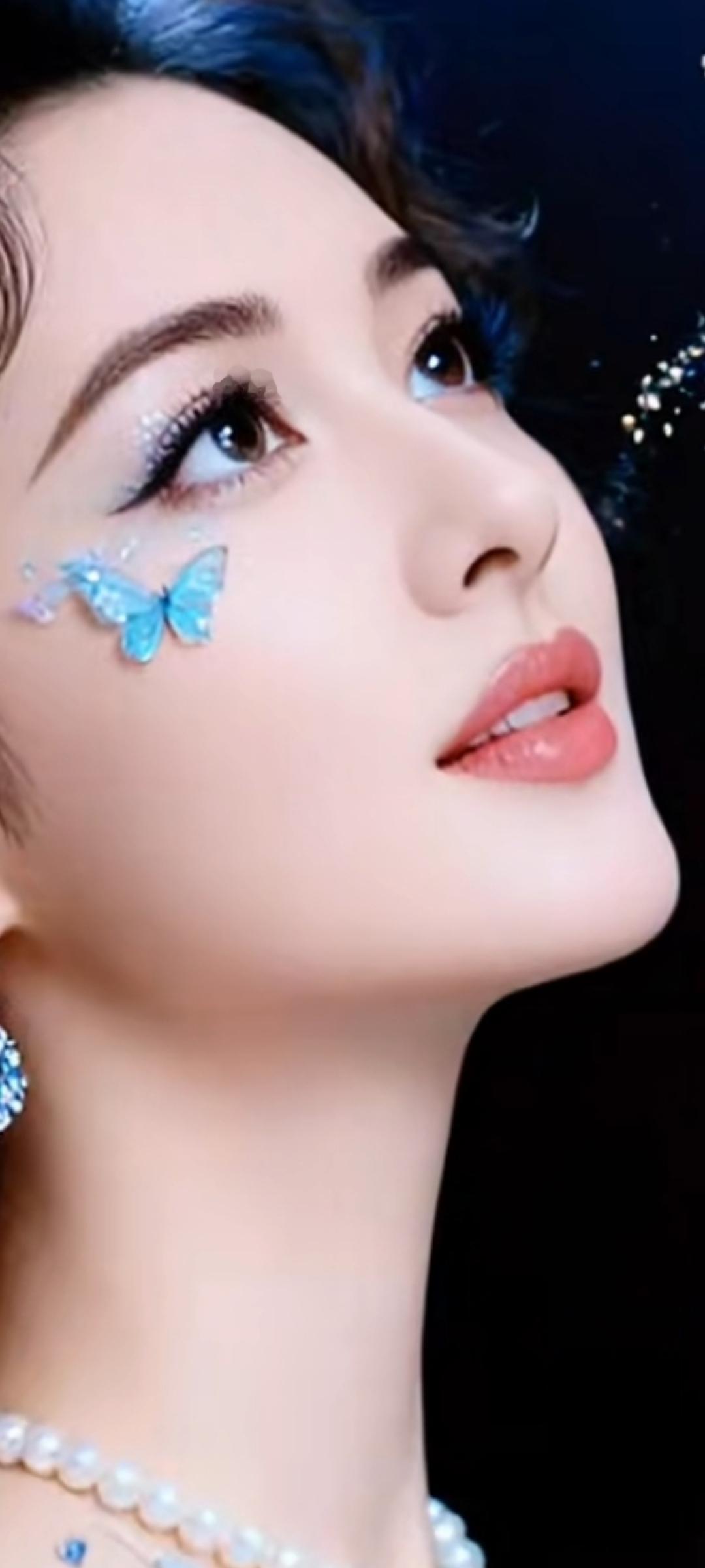 梦幻蓝蝴蝶妆容,优雅珍珠项链,仙女下凡