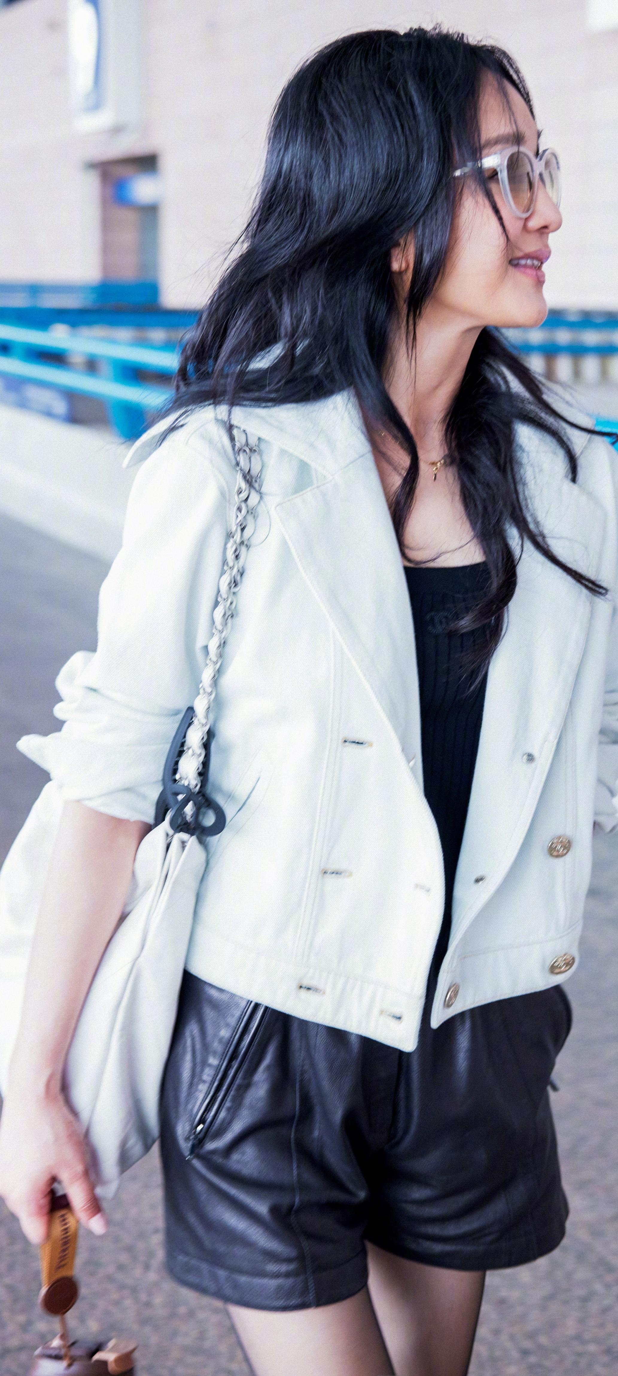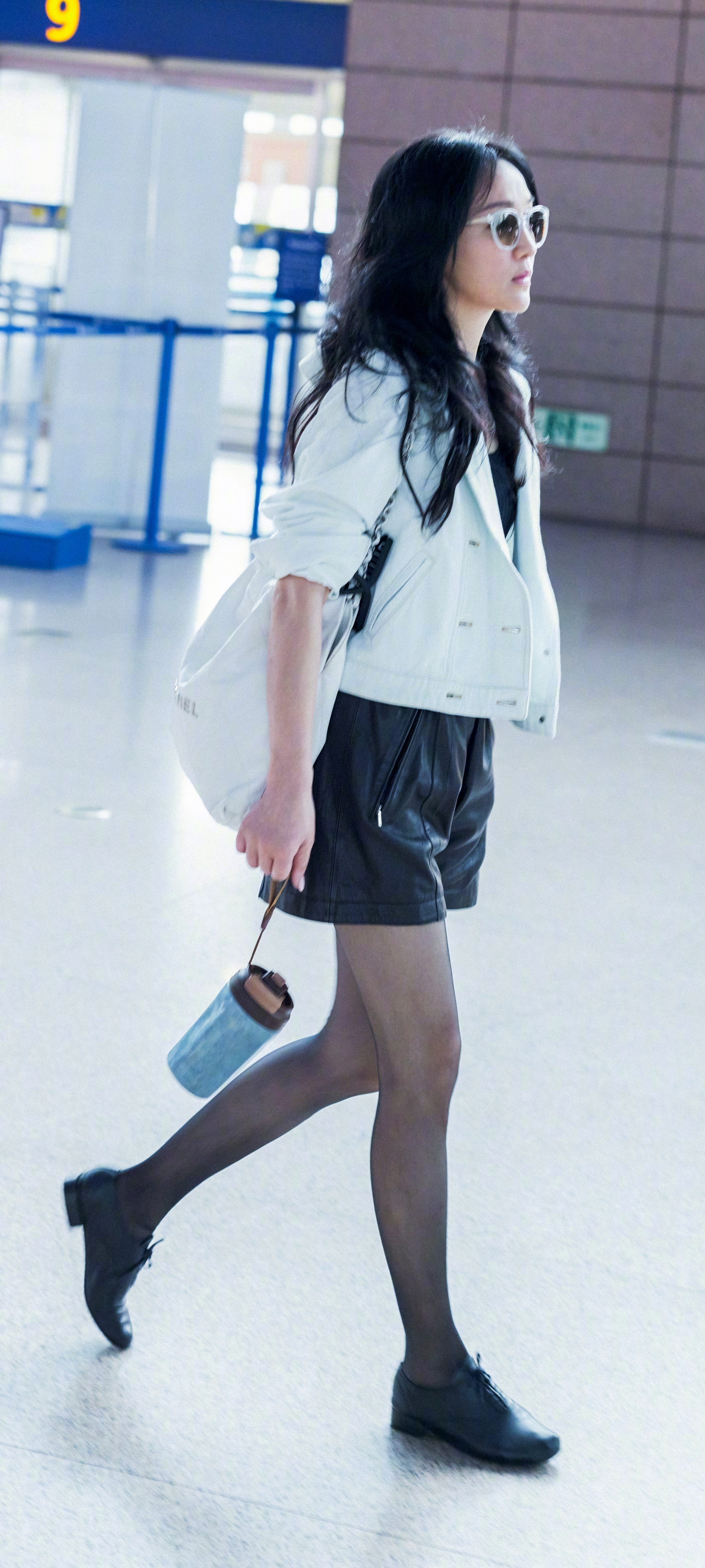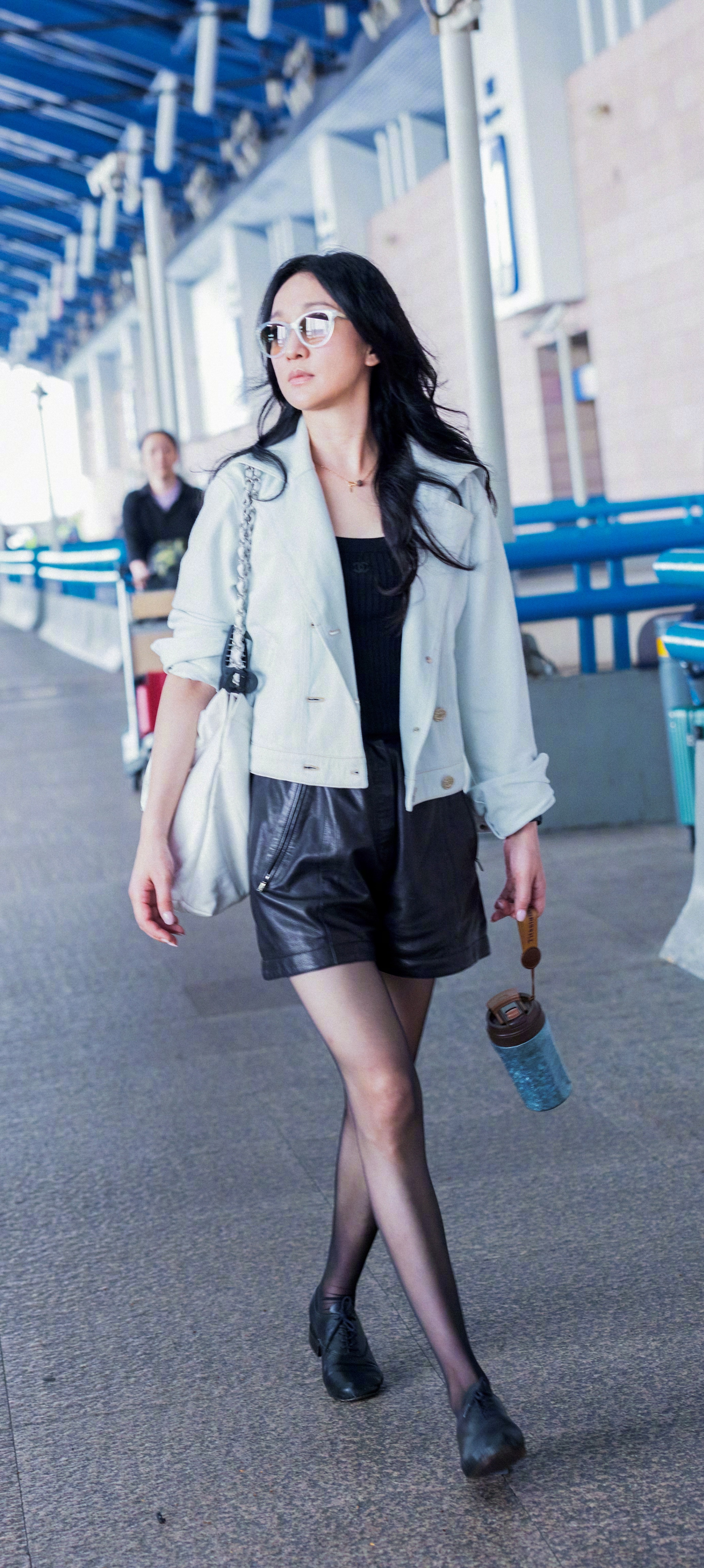 周迅街头随拍,短裤丝袜自在悠然。周迅