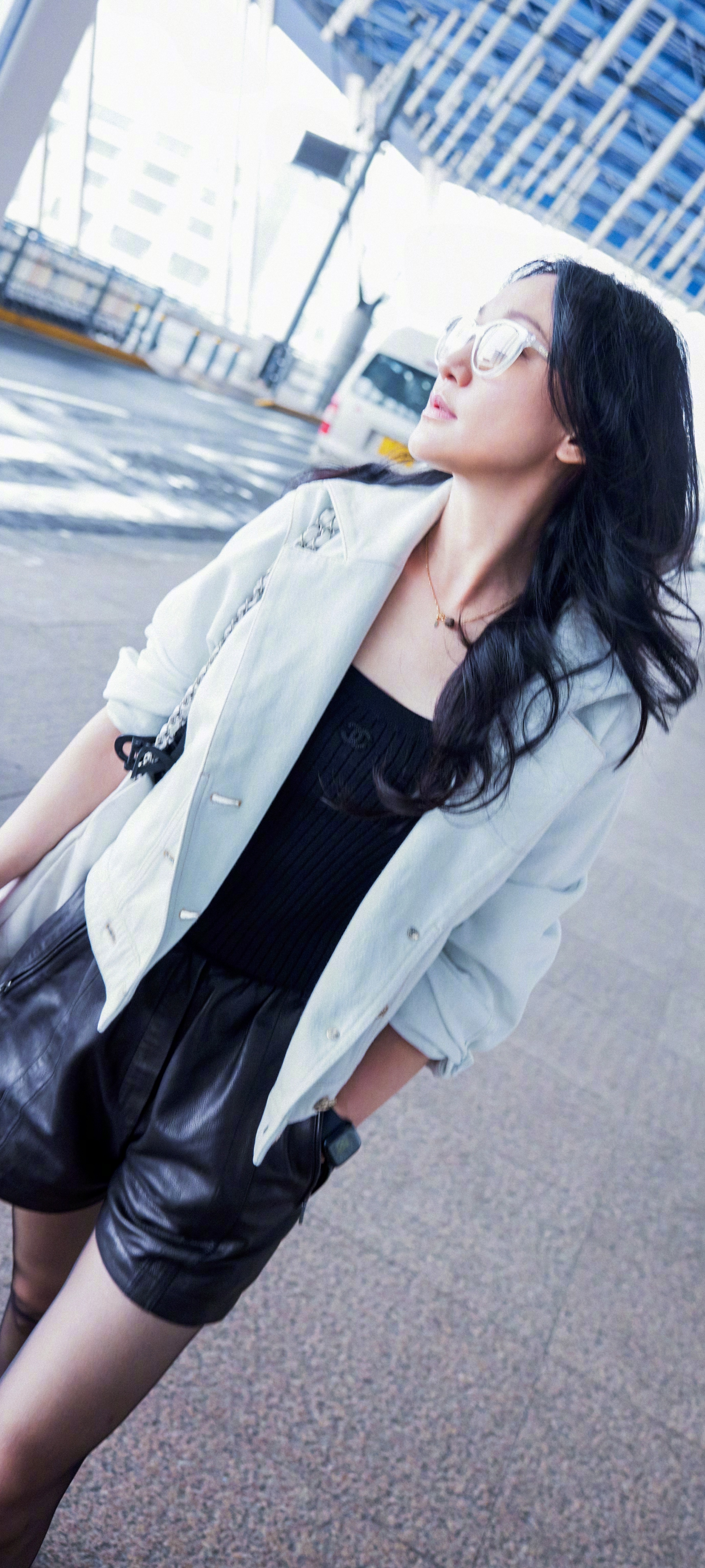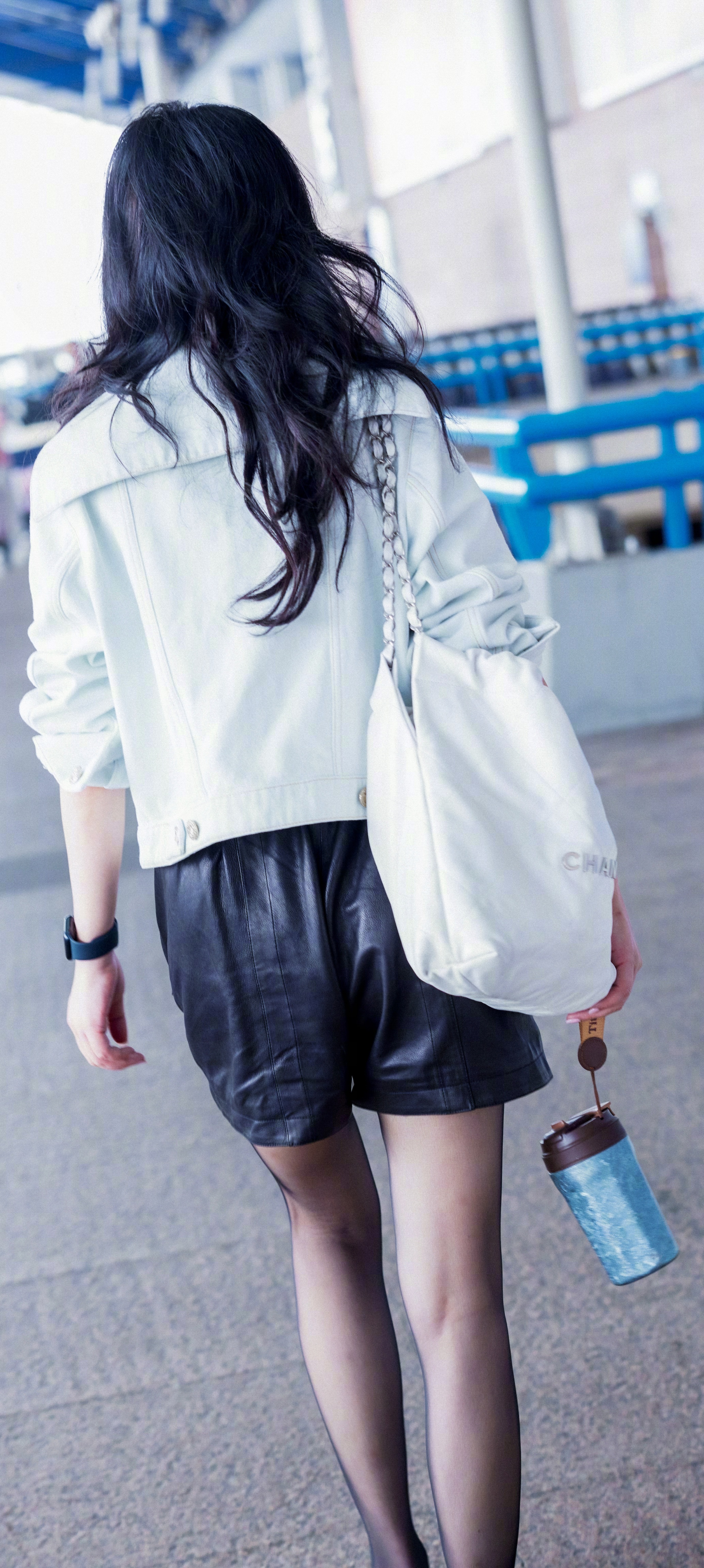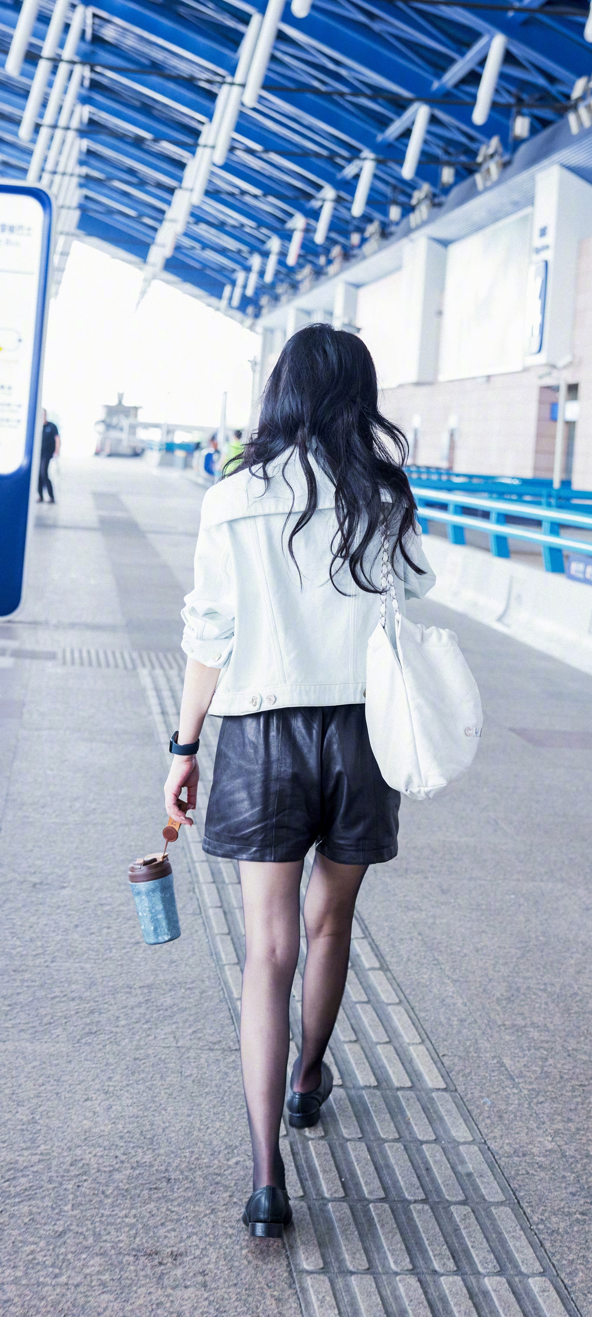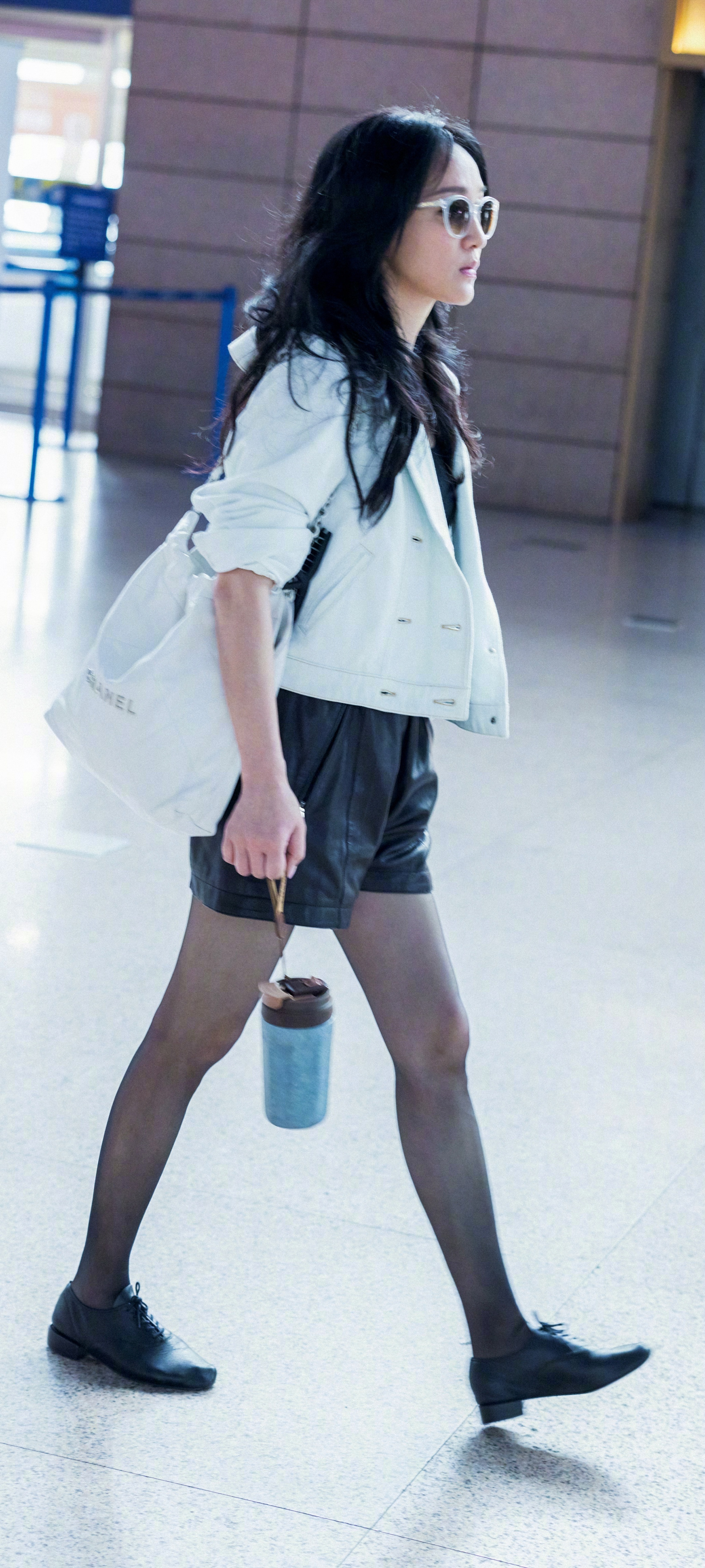 周迅街头随拍,短裤丝袜自在悠然。周迅