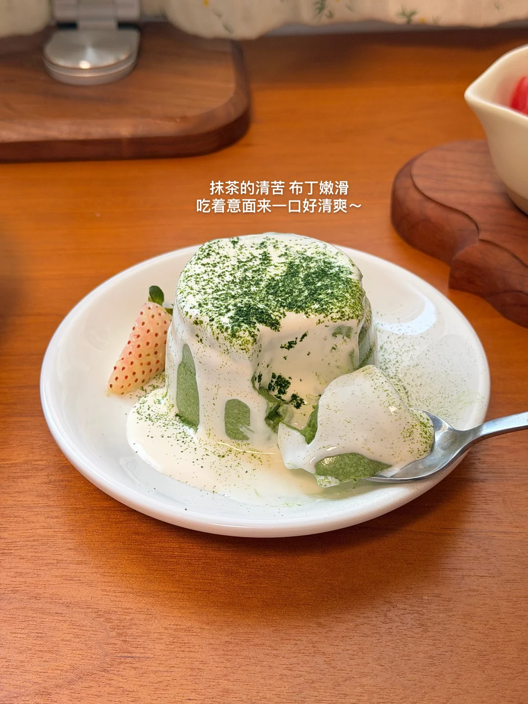 抹茶牛乳布丁我是提前一晚做好冷藏的