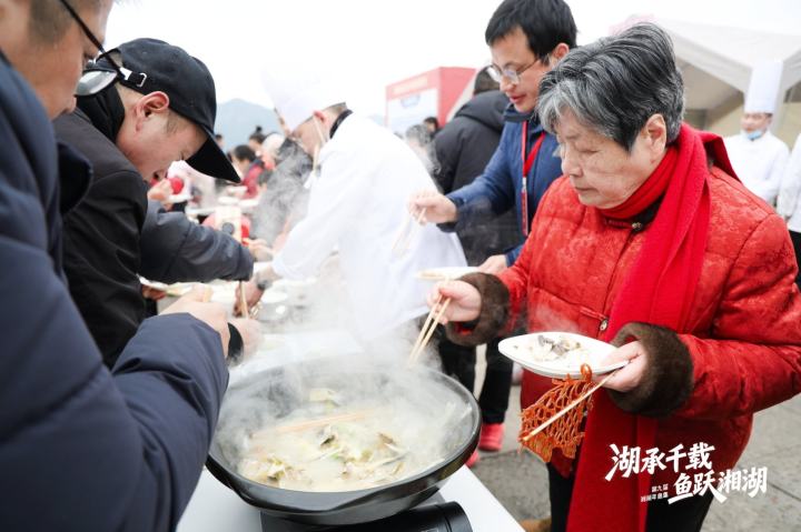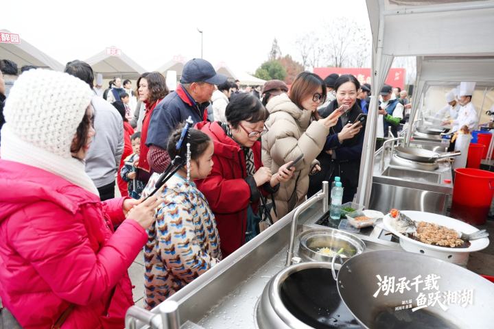 活动现场还举办了“湘湖年鱼·十八般厨艺”厨王争霸赛,13家本地餐饮品牌以湘湖鲜鱼烹制菜肴,由专业评审和大众品鉴团共同评出“年度特色推荐菜”。