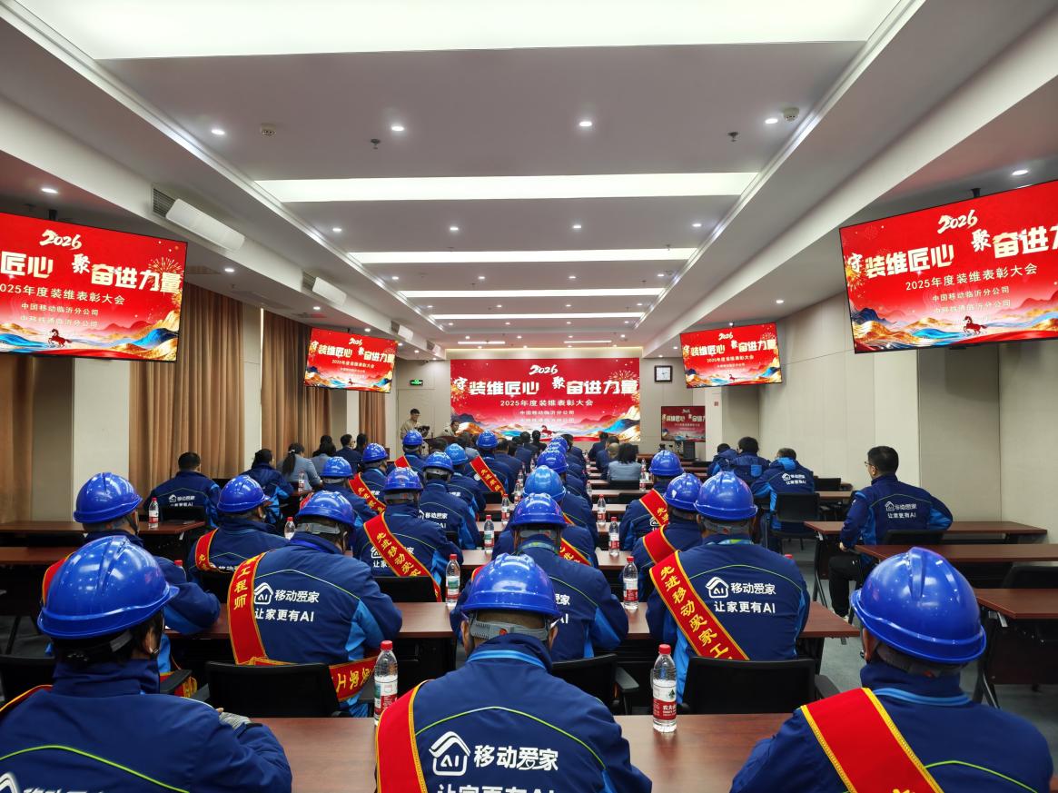 近日,山东移动临沂分公司隆重召开“装维匠心奋进力量”2025年度装维工作表彰大会,全面回顾2025年装维工作丰硕成果,表彰先进典型,部署2026年重点任务,凝聚全体装维人员奋进力量,推动装维服务工作再上新台阶。临沂移动党委委员、副总经理孙云艳,临沂铁通党委书记、总经理佟洪坤,移动铁通干部员工代表及受表彰的先进集体,优秀个人参加会议。