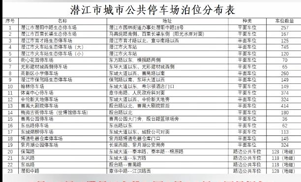 潜江城市公共停车位泊位分布表