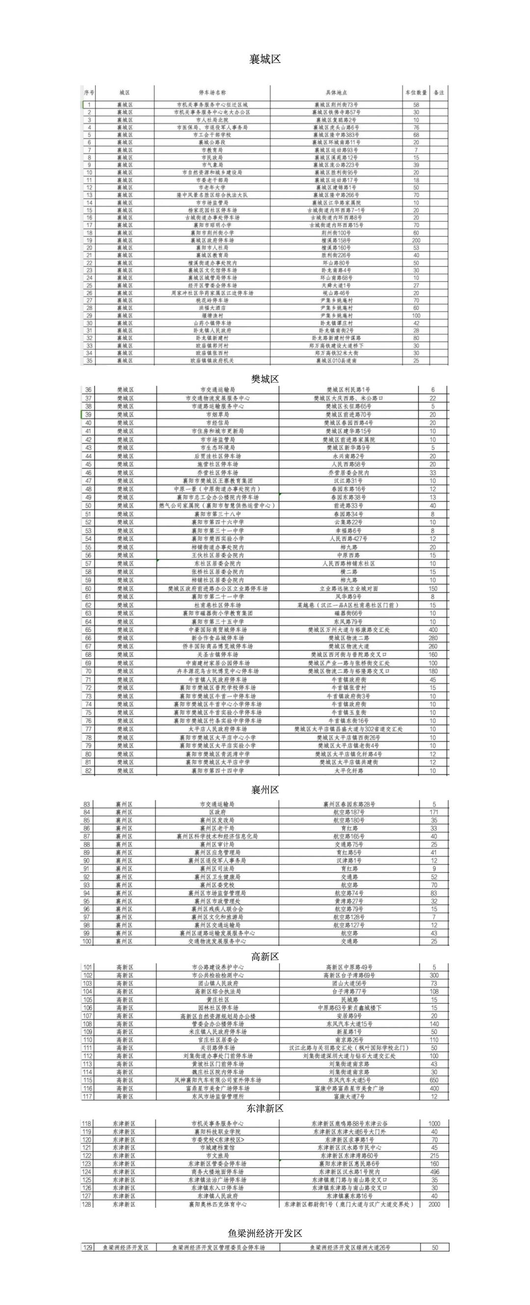 襄阳市免费开放的停车位