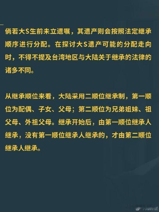 具俊晔回应大S遗产归属最近,娱乐圈又有新瓜可吃啦!具俊晔回应大 S 遗产归属的事儿在网上可是炸开了锅,这话题就像一颗投入平静湖面的巨石,激起了层层涟漪。咱先来回顾一下这事儿是怎么闹起来的。大 S 在娱乐圈那可是响当当的人物,这么多年积累下来不少财富。而具俊晔和大 S 的结合本身就充满了话题性,大家的目光自然都聚焦在和他们有关的方方面面。当遗产归属这个话题被抛出来后,具俊晔的回应就成了大家关注的重点。具俊晔的回应到底说了啥呢?他的态度似乎比较平和。从他的话语中能感觉到,他并没有把遗产当成首要关注点。有心理学家指出,在婚姻关系里,对待财产的态度往往能反映出一个人的价值观和对这段关系的真实想法。具俊晔的这种回应,或许说明他更看重和大 S 之间的感情,而不是物质财富。不过呢,网友们的看法可就五花八门了。有的网友觉得具俊晔这是高情商的表现,懂得在这种敏感话题上把握分寸,不把金钱利益摆在首位,给人一种重情重义的感觉。就像在一些明星夫妻的故事中,那些不把物质看得太重的一方往往能赢得更多的好感。但也有网友质疑,这是不是一种表面功夫呢?毕竟在娱乐圈这个复杂的大染缸里,很多事情都不能只看表面。说不定背后还有一些不为人知的利益纠葛呢。从法律层面来讲,遗产的归属是有明确规定的。根据我国《民法典》婚姻家庭编的相关内容,夫妻之间是有相互继承遗产的权利的。但具体到明星的财产情况,可能会更加复杂,因为他们的财产来源多样,包括演艺收入、代言费、投资收益等等。所以,大 S 的遗产归属问题,不仅仅是一个情感问题,更是一个涉及法律和财产分割的严肃问题。这事儿也让我们思考,在婚姻中,财产和感情到底该如何平衡呢?是像具俊晔这样看似洒脱地对待遗产问题,还是应该把财产问题摆在明面上,提前做好规划?其实,这并没有一个固定的答案。每对夫妻都有自己的相处模式和价值观。有的夫妻可能更看重感情,觉得只要两个人相爱,财产都是身外之物;而有的夫妻则会更理性地对待财产问题,毕竟生活中处处都离不开钱。具俊晔回应大 S 遗产归属这事儿,就像一部精彩的电视剧,充满了各种情节和悬念。它让我们看到了娱乐圈的复杂和现实生活中的人性百态。无论具俊晔的回应是出于真心还是另有隐情,这都给我们提了个醒,在婚姻和生活中,我们要学会平衡感情和物质,找到属于自己的幸福之道。不知道大家对于具俊晔的回应和大 S 遗产归属问题有什么看法呢?欢迎在评论区留言讨论哦!