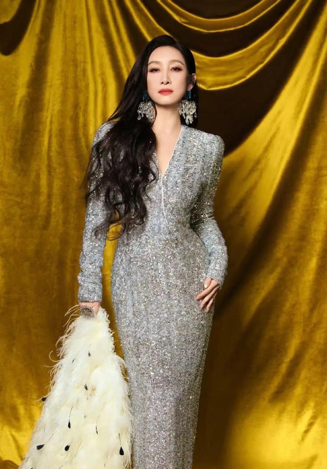 秦海璐这是把银河穿在了身上吧!一袭银闪亮片裙,搭配蓝绿宝石耳饰,在金色幕布前美到发光,气场直接封神✨