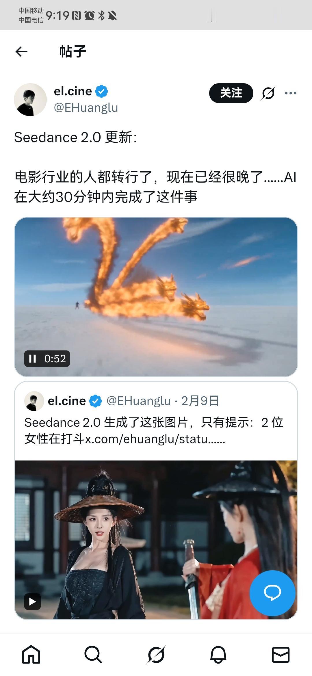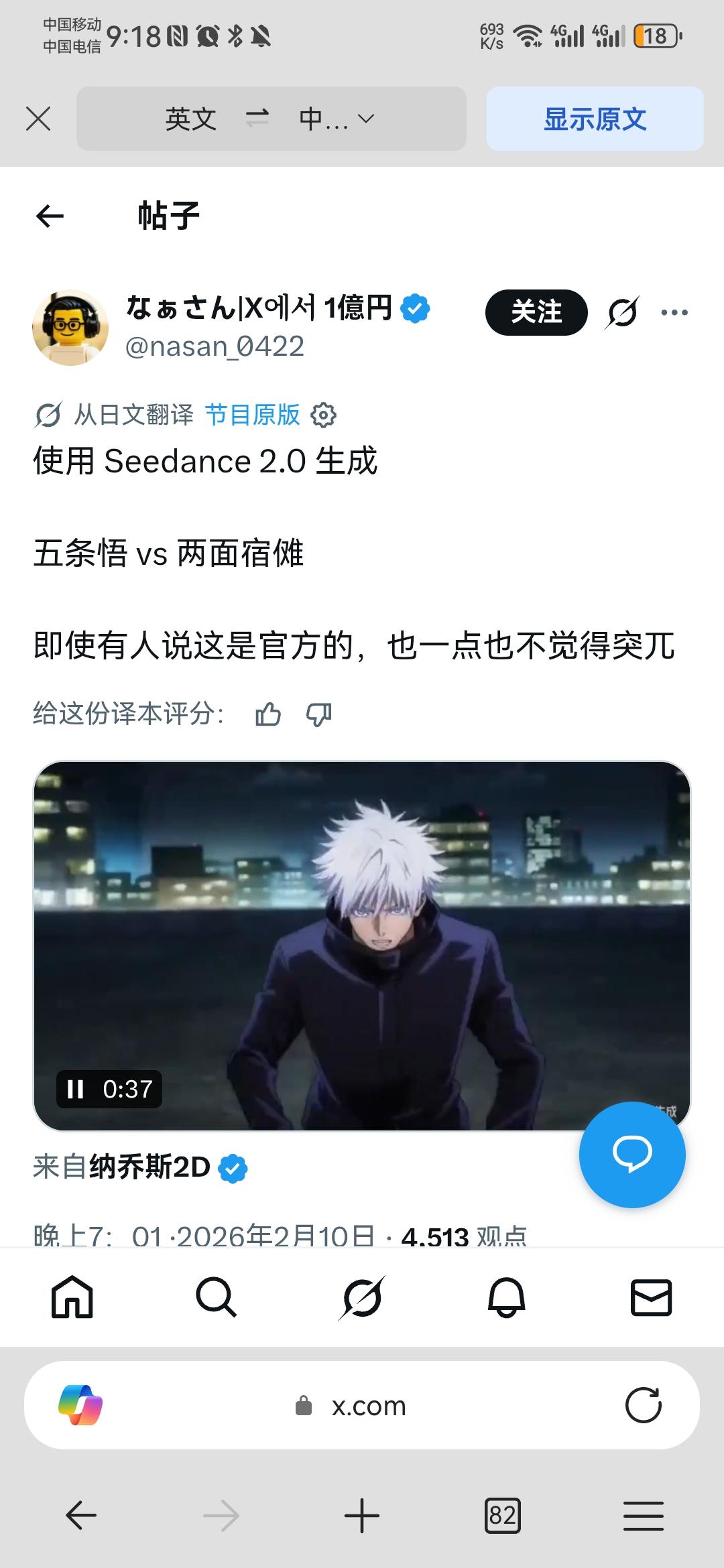近日,中国AI视频生成模型Seedance2.0在海外爆火,引发了堪称是病毒式的传播,许多帖子动辄都是几十万、几百万的浏览量,我询问了马斯克旗下的人工智能gork,它都直接回答说:“Sendance2.0k可以说是目前AI视频生成领域最火爆的现象级产品之一。”“相关帖子铺天盖地,每分钟都有新内容涌现,热门贴点赞轻松上千到上万。” 之所以如此,还是因为Seedance2.0的视频生成能力实在是太强大了,堪称是一个飞跃式的进步,吊打之前的sora,凭借几段文字、几张图片,就能够轻轻松松生成电影级别的流畅清晰画面,而且在分镜、剪辑、配音上,也达到了一个前所未有的水准,外网上所有使用了Seedance2.0的人,全部都被这个恐怖的性能给震撼。 有的直接感叹:“Seedance2.0”,也有的用Seedance2.0生成了一段与日本动漫《咒术回战》相关的视频,直接惊叹说道:“即使有人说这是动漫官方的,也一点不觉得突兀。”还有的直接斩钉截铁说道:“我们以互联网的重大转变开启了新的一年,这就是未来!”也有电影行业的业内人士不无沮丧,说:“电影行业的人都应该转行了,实际上现在已经很晚了。” 谁也没有想到,中国的AI行业发展竟然这么迅猛,以前在视频生成领域,我们还略微落后美国,可现在随着字节跳动推出Seedance2.0,毫无疑问我们已经站在了这一领域的最巅峰,是目前全球最强的AI视频生成模式,没有之一!它惊艳的表现,直接震撼了整个外网,引发了滔天的讨论,迅速刷屏全网! 而这,正是对中国科技实力最好的一个说明。