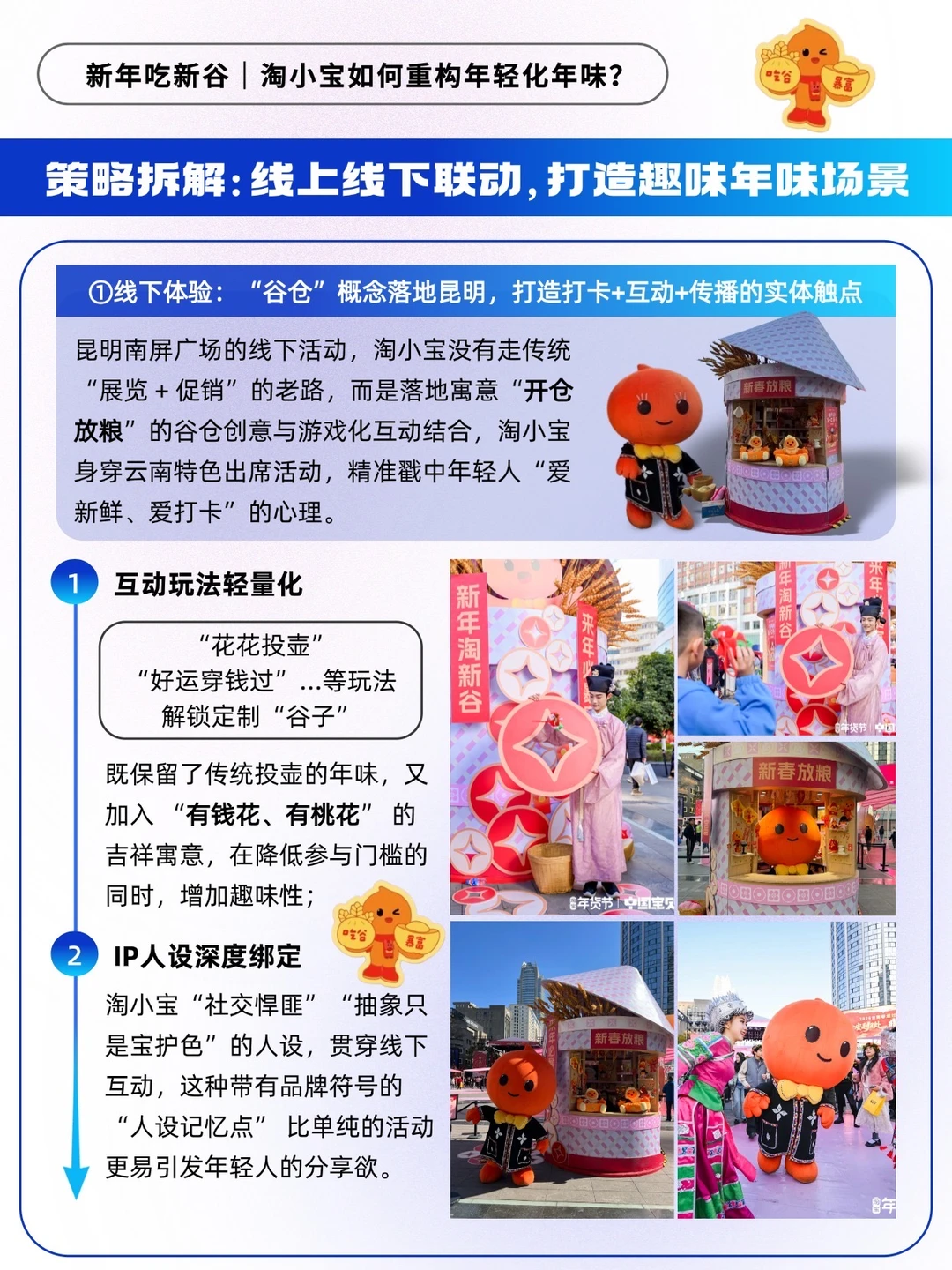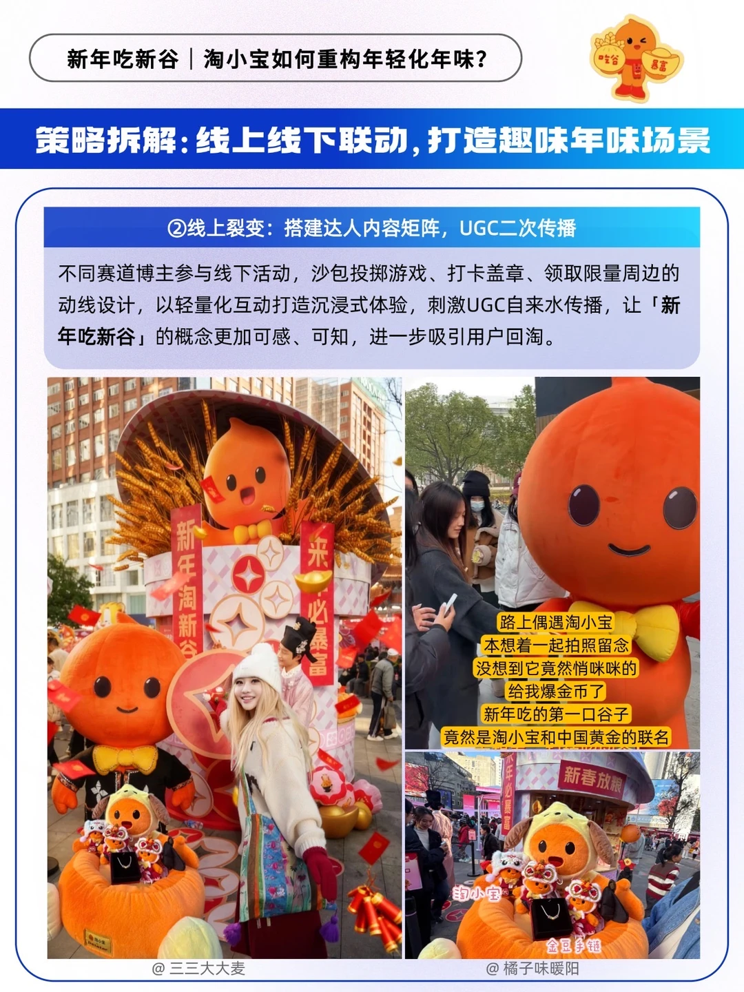 🟠昆明线下的官宣首发,以谷仓互动、轻量化投壶游戏,搭配淘小宝 “社交悍匪” 的鲜明人设,让体验自带分享欲;线上的达人矩阵与 UGC 裂变,则让 “新年吃新谷” 的声量持续发酵。