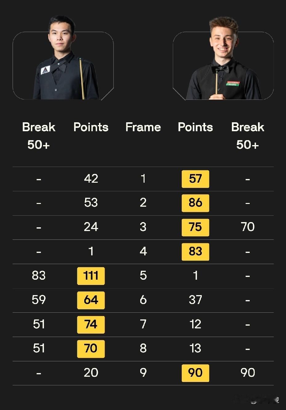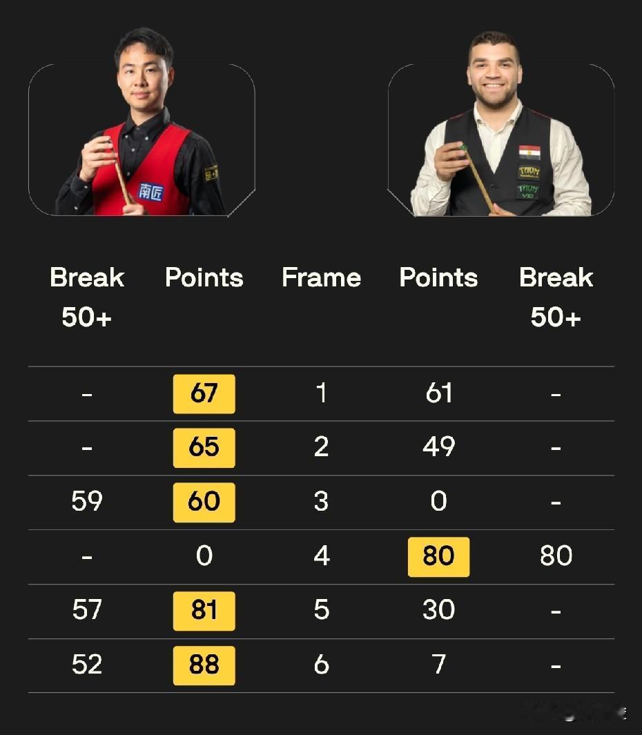 世界公开赛资格赛战报,18点时段的比赛结束,常冰玉、雷佩凡、徐思、贺国强晋级,刘宏宇出局。 常冰玉5-0横扫亚森、雷佩凡5-0零封舒巴奇克,徐思5-1大胜哈利迪,贺国强5-4绝杀萨科霍什。 刘宏宇开局后状态不佳,0-4落后,之后如梦初醒,连追了4局。决胜局刘宏宇率先拿到20分,可惜之后防守出现失误,5-4被科瓦尔斯基绝杀出局。 按实力讲,刘宏宇不比对手差,可惜落后太多,容错空间几乎没有,最终功亏一篑,这是个教训。 贺国强4-2领先,被萨克霍斯追到4-4,好在决胜局打得不错,一杆破百绝杀对手,5-4惊险晋级。 其他几场中国球员的比赛比较顺利,常冰玉5-0横扫亚森,雷佩凡5-0零封波兰小将舒巴奇克,徐思5-1大胜哈利迪。 今天22点30分,还有3场中国球员的比赛,张家玮对阵吉米·罗伯逊,吴安仪迎战宾汉姆,姚朋成迎战沃拉斯顿,3场都是硬仗,希望中国球员能爆冷拿下一场。