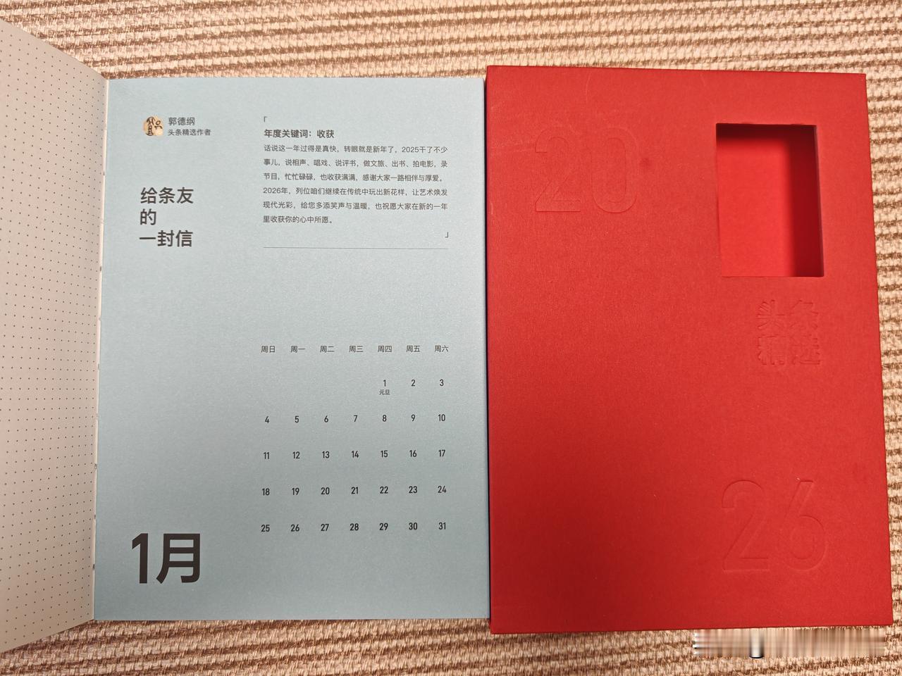 快过年了,连续收到了今日头条邮寄来的2个小礼物,这是今日头条对我2025年以来输出的肯定。 小礼物1:全球限量版的书本,很有意义,可以记很重要的消息,真是头条记头条,有心了! 小礼物2:一枚纪念徽章,创作无畏!这是对我每一篇原创文章的肯定。