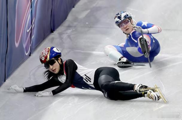 半决赛荷兰队X妹自己摔出赛道;美国女队一路“伐大树”,最终把韩国队放倒,申诉也没用。