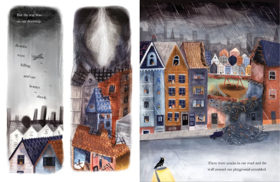 2021年弗兰克长名单入选绘本,以美好的视角反衬战争的残酷,引发孩子深刻思考战争与和平)