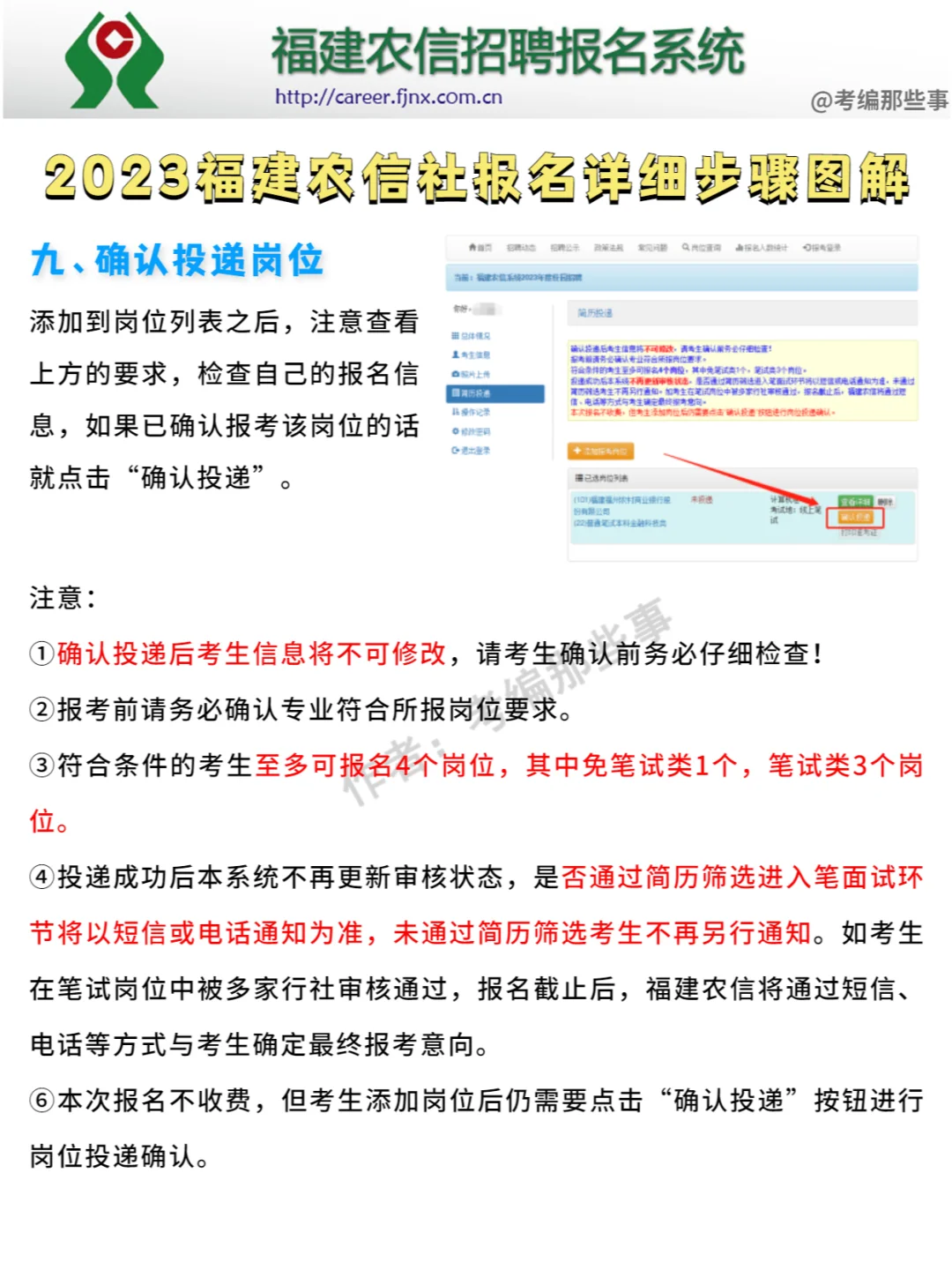 ③投递成功后本系统不再更新审核状态,是否通过简历筛选进入笔面试环节将以短信或电.话通知为准,未通过简历筛选考生不再另行通知