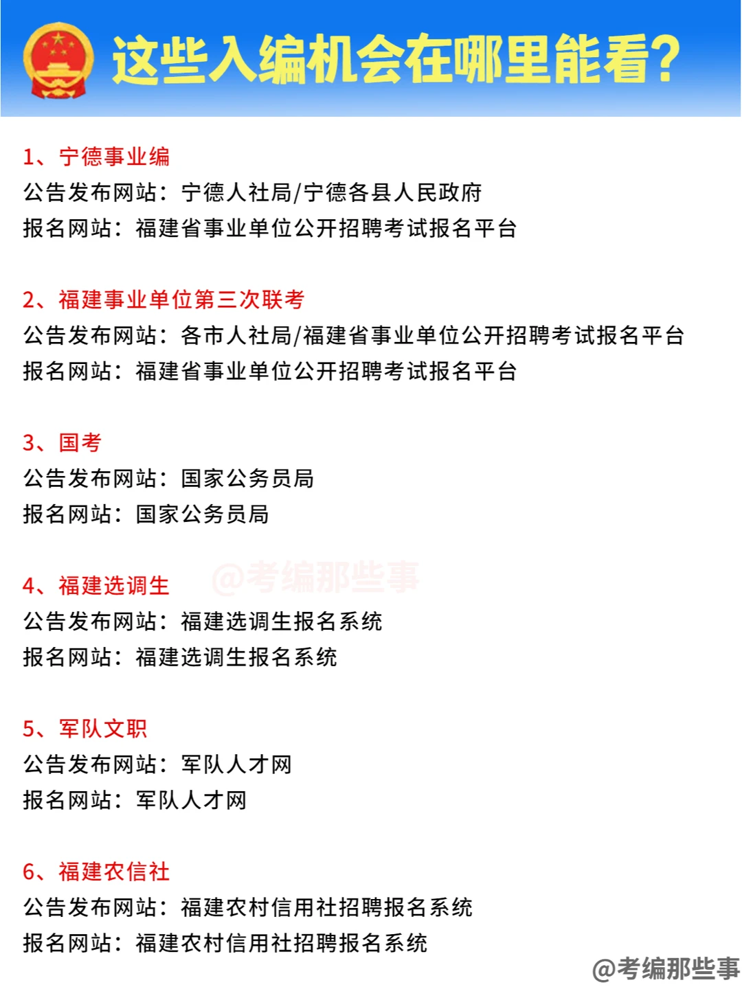 公告发布网站:各市人社局/福建省事业单位公开招聘考试报名平台