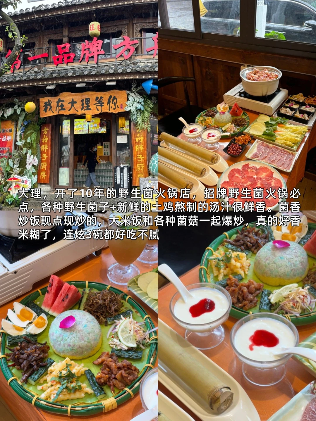 对啦,每次出来旅行,总会逛街吃美食,分享下这家方舟胖子厨房·野生菌头牌·手抓饭:开了10年的云南大理野生菌火锅,招牌野生菌火锅必点,各种野生菌子+新鲜的土鸡熬制的汤汁很鲜香