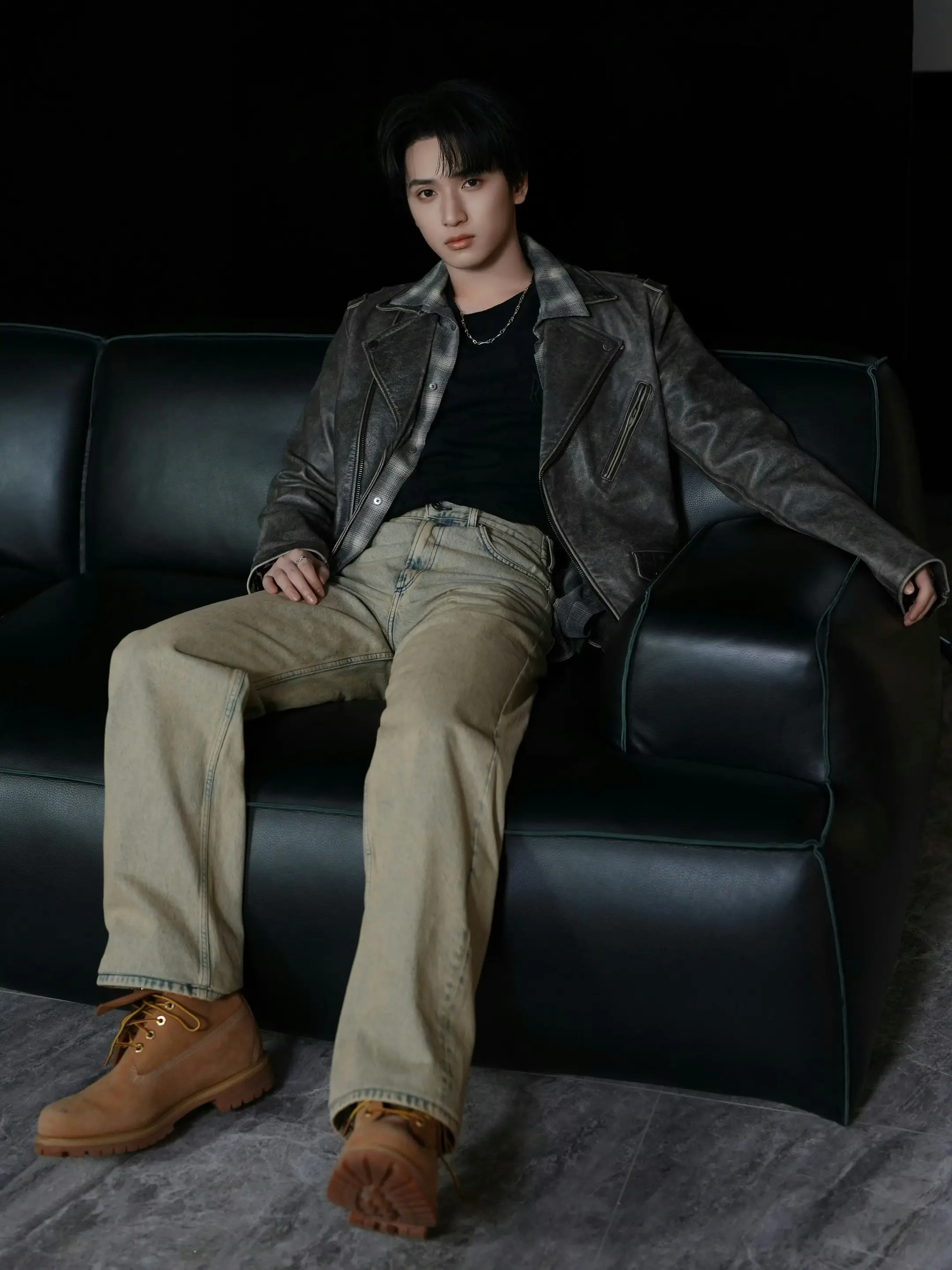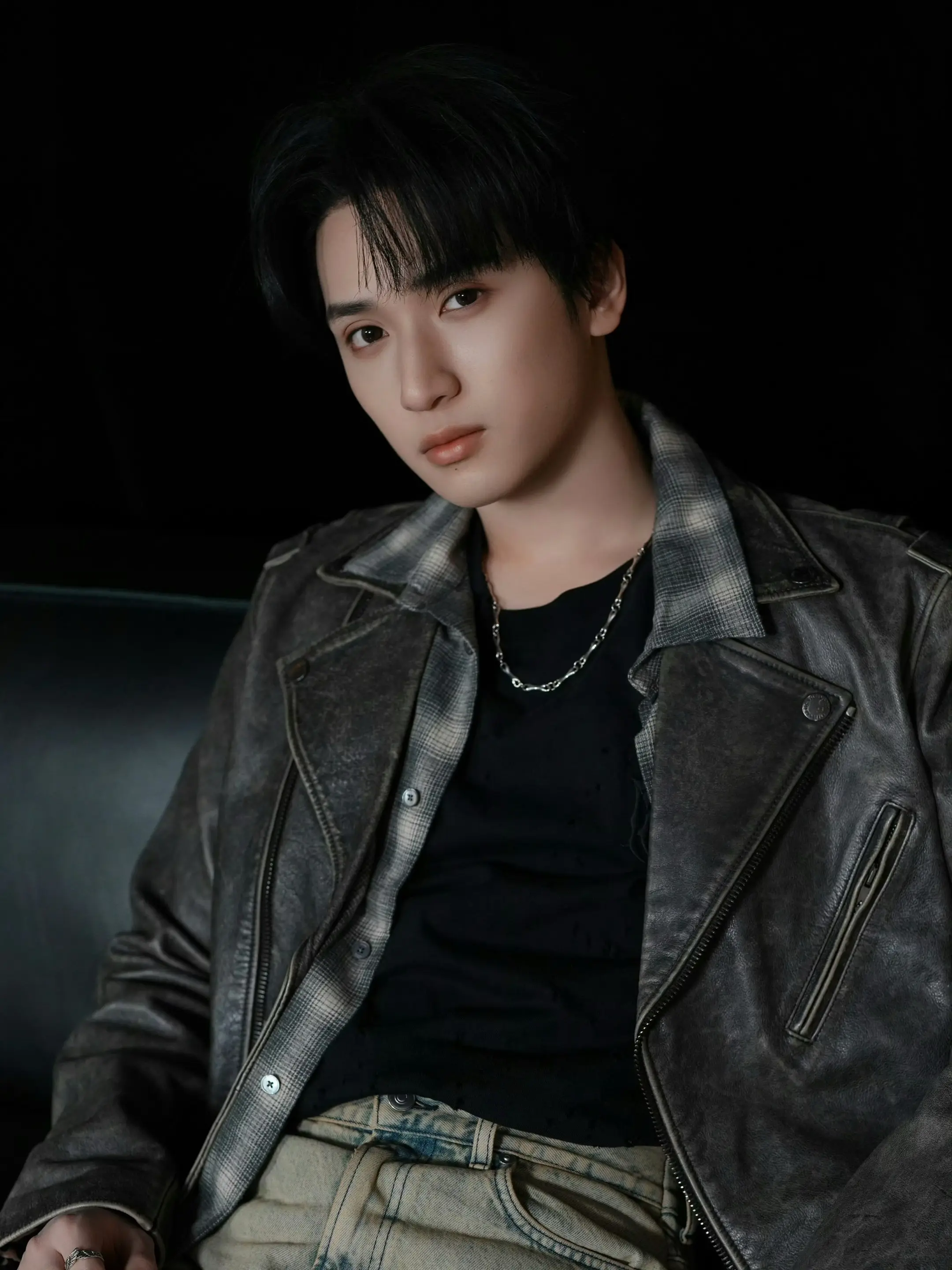 严浩翔· chao级帅的小严 chao级帅的小严!一组全新写真大片发布,严浩翔灰调做旧机车风皮衣,诠释慵懒简约。