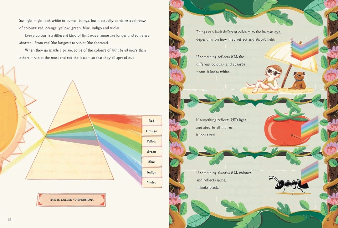 作者 Jess Wade 是一位来自帝国理工学院的杰出高分子物理学家,在这本绘本中,Wade 凭借其深厚的专业知识,用通俗易懂的语言为孩子们讲解光的科学知识。从夜空中神秘的星光到彩虹形成的原理,从光在日常生活中的应用到其在科学研究中的重要性,她将复杂的光学知识拆解成一个个有趣的小故事和易于理解的知识点。例如,书中可能会解释为什么夜晚的天空看似黑暗却从不完全漆黑,这背后涉及到光在大气层中的散射以及遥远恒星的微弱光芒等知识;对于彩虹,会详细阐述阳光如何在雨滴中折射、反射从而形成绚丽的七彩光谱。